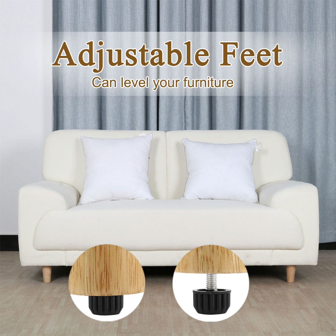 The Leveling Foot is for office or household light duty furniture with threaded sockets. Plastic round base design will do no harm and scratches to your floors. Easy to install of it and adjustable height as your require. This Furniture Glide Leveler is typically used on conference room tables, heavier desks, restaurant furniture, home equipments and sale display racks. If the range of the nut size is 6.65-7.05mm/0.26 Inch-0.28 Inch, you can use these leveling feet to install your furniture feet.