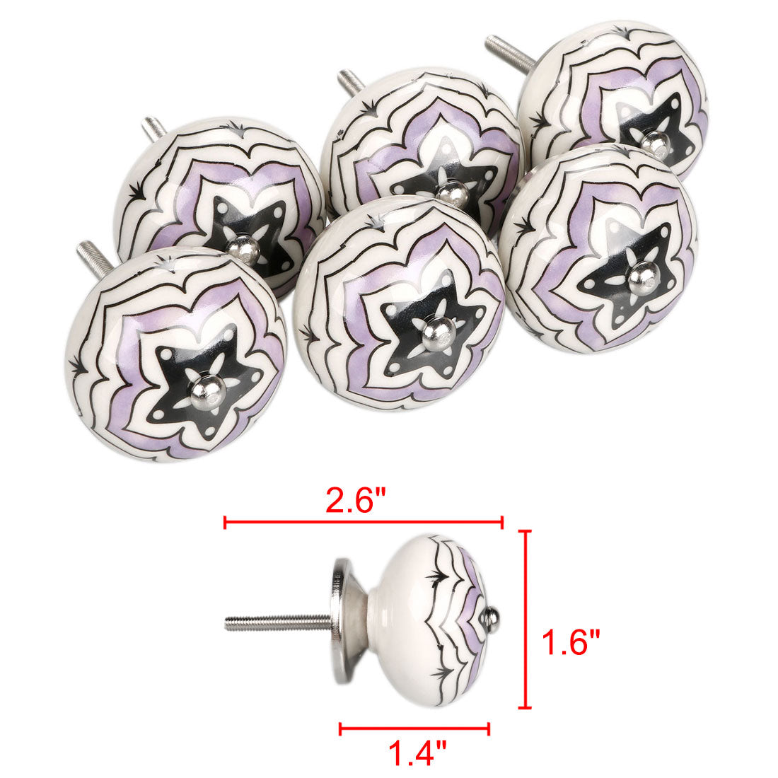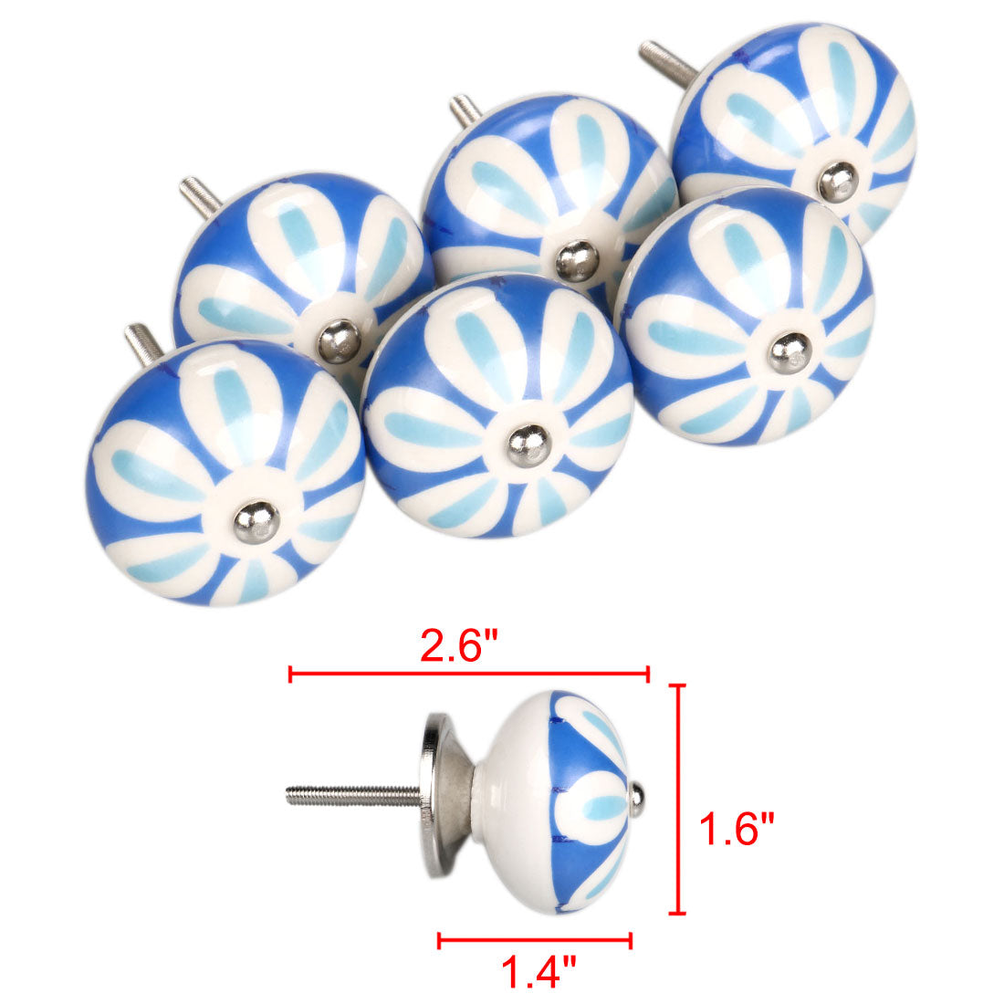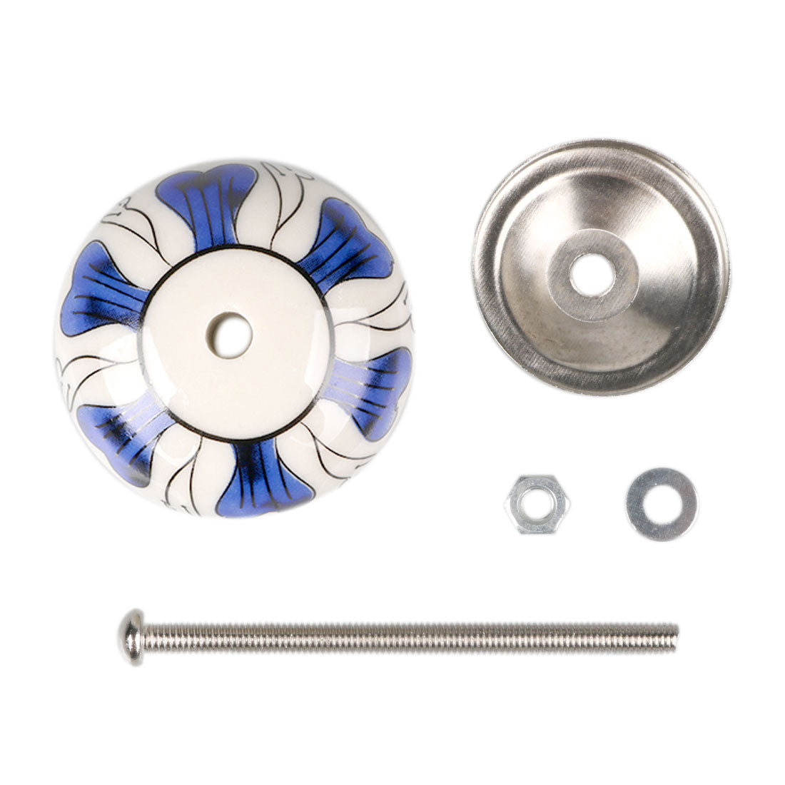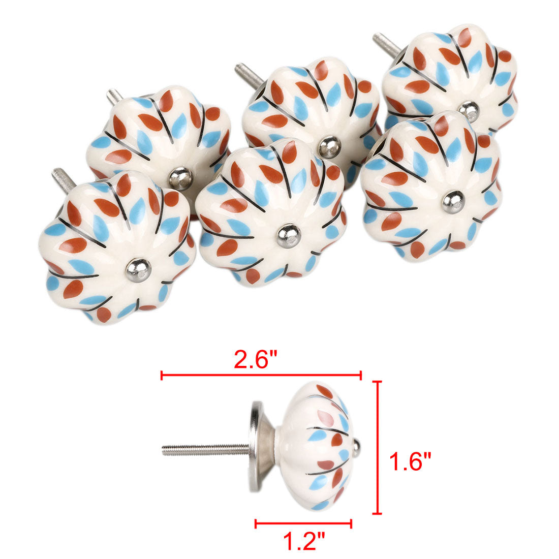 Description:The India pretty handmade or painted ceramic floral knobs are preferred for a drawer, cabinet, cupboard, wardrobe, door etc. Specification:Material: Ceramic, Aluminium AlloyKnob Diameter: 40mm/1.6 InchKnob Height(After Installation): 30mm-35mm/1.2 Inch-1.4 InchScrew Size : 65 x 7mm/2.6 Inch x 0.3 Inch(L*Max.D)Thread Dia: 4mm/0.16 InchEasy to fit - each knob comes with washers and nut fasteners.25 designs are available.Color: Cattleya, Robinia Idaho, Gazania, Maple Leaf, Vines, Five-pointed Star, Crinum Asiaticum, Mixed Color #1, Purple Tillandsia, Delphinium Anthriscifolium Hance, Mixed Color #2, Chilli, Zephyranthes Grandiflora, Snowflake, Black Tillandsia, Blue and White Banana Leaf, Blue and White Flower, Peony, Orange Flower, Pachira Macrocarpa, Pink Branches, Mixed Color #3, Mixed Color #4 Package Content:1 x Knob with Fittings or 6 x Knobs with Fittings :If there is any other problem, please email us at any time, we will provide you the best solution as soon as possible. Notice:1. Please allow 1-3mm error due to manual measurement.2. The colors may have a little bit different due to screen display or light.
