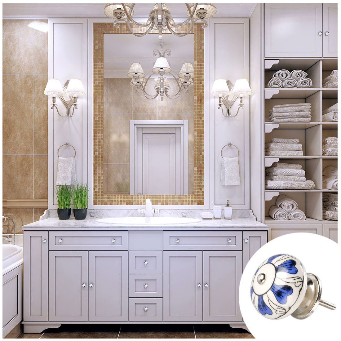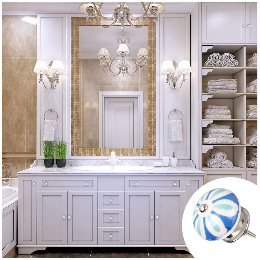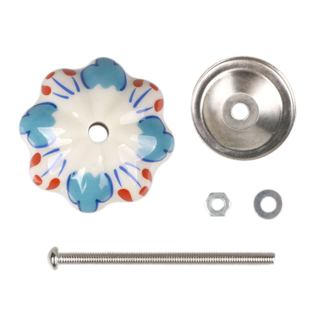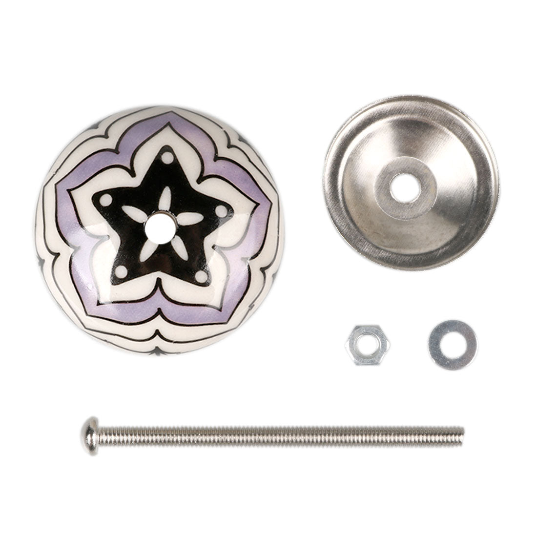 Description:The India pretty handmade or painted ceramic floral knobs are preferred for a drawer, cabinet, cupboard, wardrobe, door etc. Specification:Material: Ceramic, Aluminium AlloyKnob Diameter: 40mm/1.6 InchKnob Height(After Installation): 30mm-35mm/1.2 Inch-1.4 InchScrew Size : 65 x 7mm/2.6 Inch x 0.3 Inch(L*Max.D)Thread Dia: 4mm/0.16 InchEasy to fit - each knob comes with washers and nut fasteners.25 designs are available.Color: Cattleya, Robinia Idaho, Gazania, Maple Leaf, Vines, Five-pointed Star, Crinum Asiaticum, Mixed Color #1, Purple Tillandsia, Delphinium Anthriscifolium Hance, Mixed Color #2, Chilli, Zephyranthes Grandiflora, Snowflake, Black Tillandsia, Blue and White Banana Leaf, Blue and White Flower, Peony, Orange Flower, Pachira Macrocarpa, Pink Branches, Mixed Color #3, Mixed Color #4 Package Content:1 x Knob with Fittings or 6 x Knobs with Fittings :If there is any other problem, please email us at any time, we will provide you the best solution as soon as possible. Notice:1. Please allow 1-3mm error due to manual measurement.2. The colors may have a little bit different due to screen display or light.