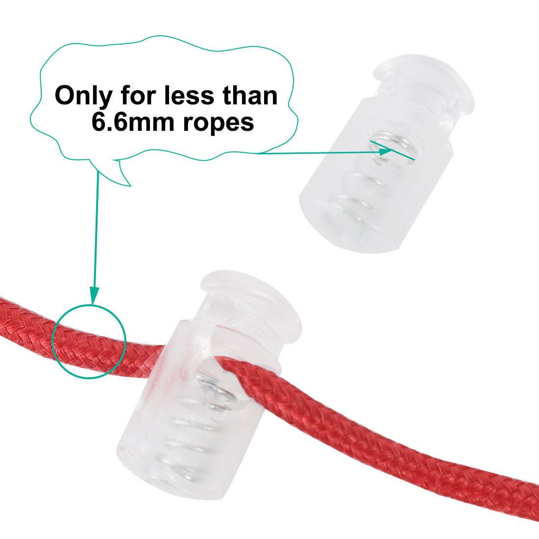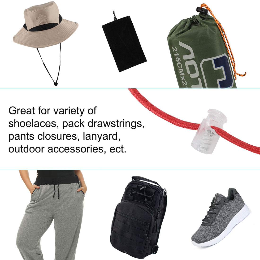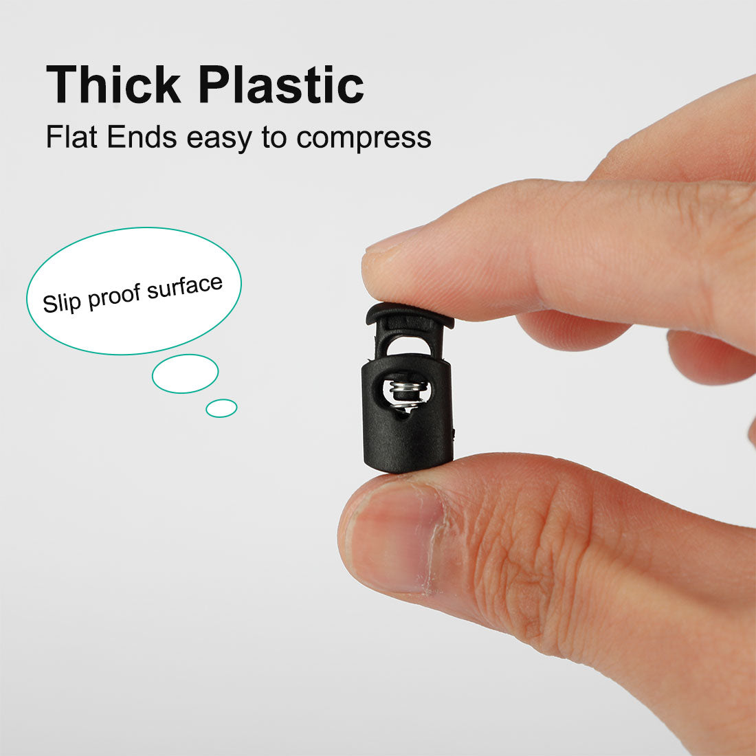 1. Made of plastic, durable and lightweight; The tough internal spring is built for long-lasting performance, flexible enough for easy use; Cord locks can be used in dryer or washing machine.