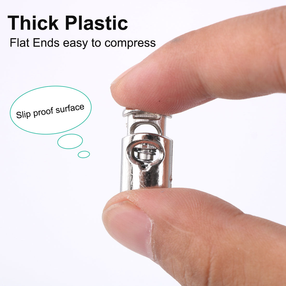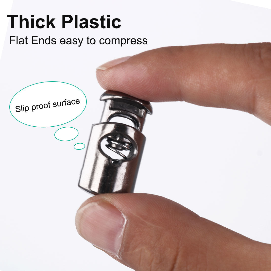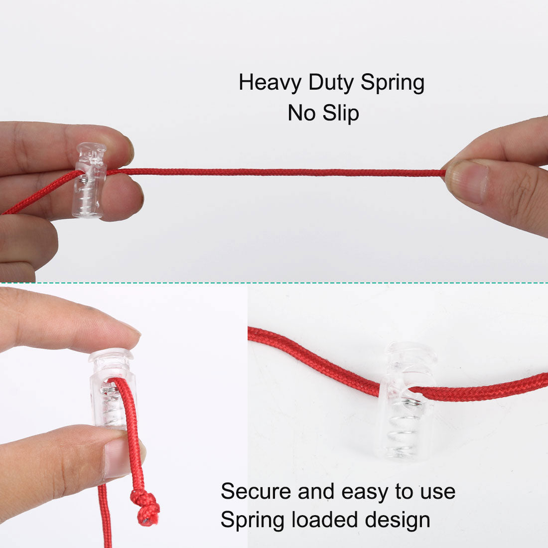 1. Made of plastic, durable and lightweight; The tough internal spring is built for long-lasting performance, flexible enough for easy use; Cord locks can be used in dryer or washing machine.