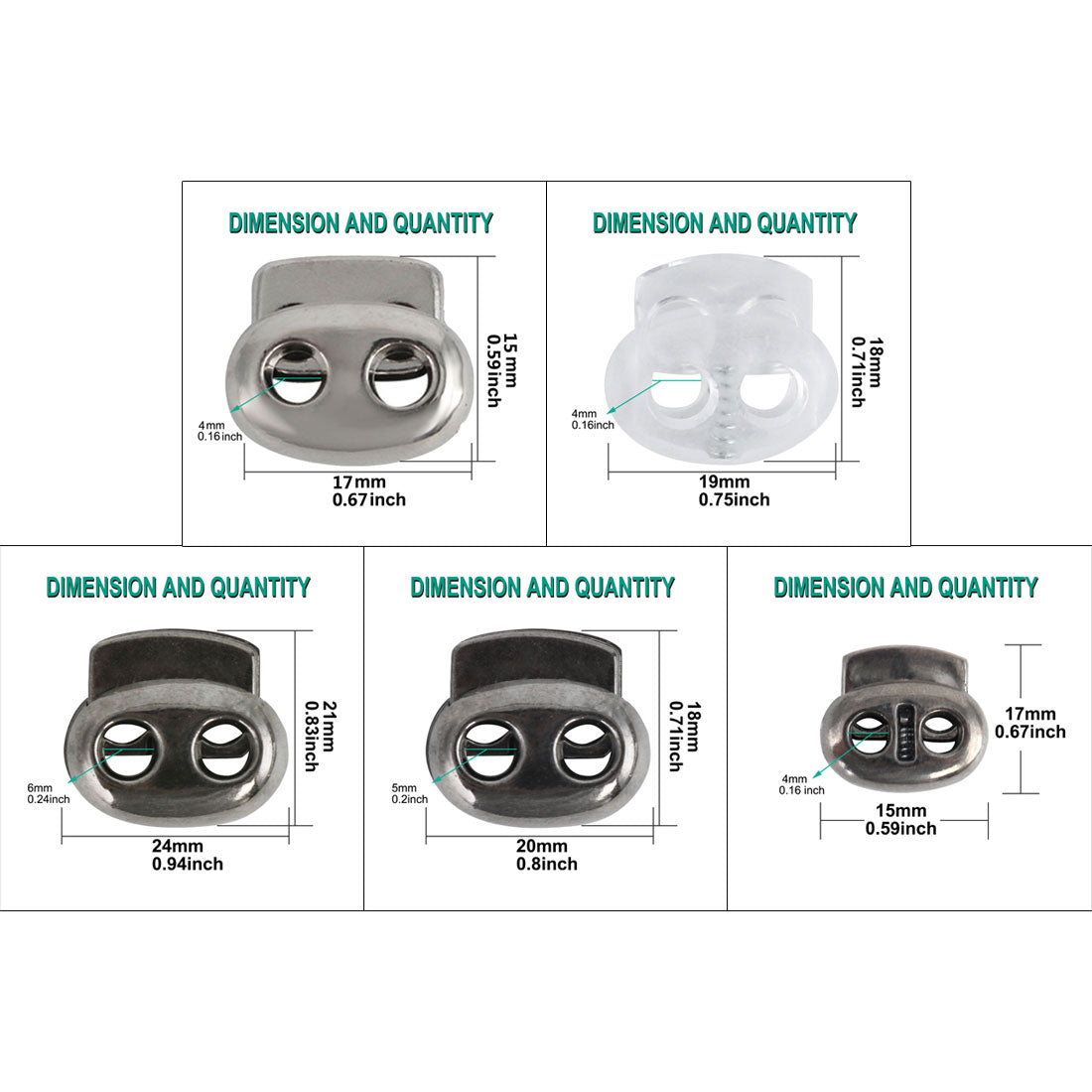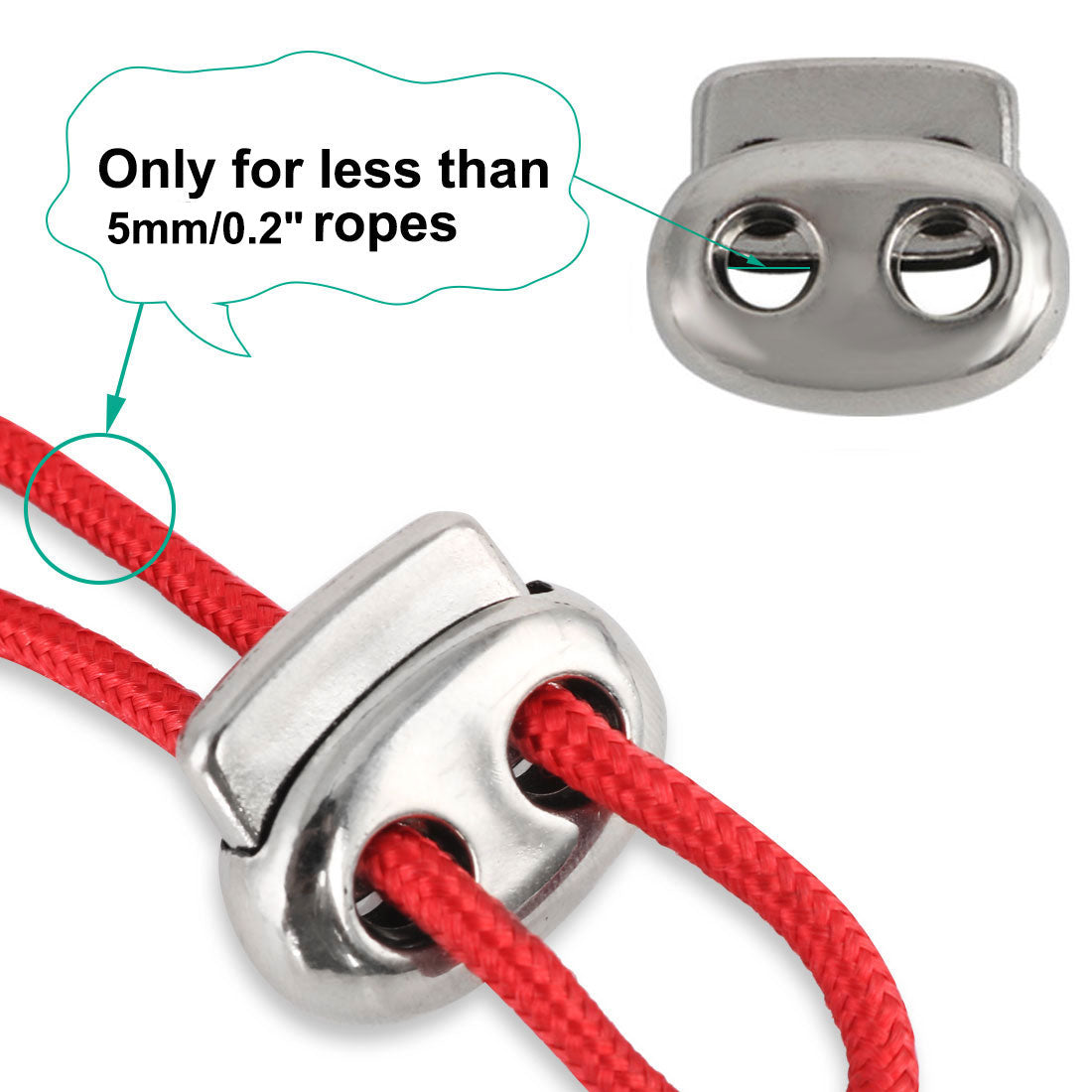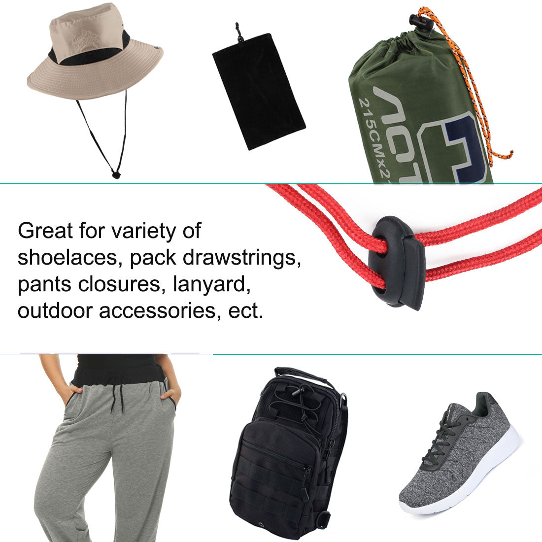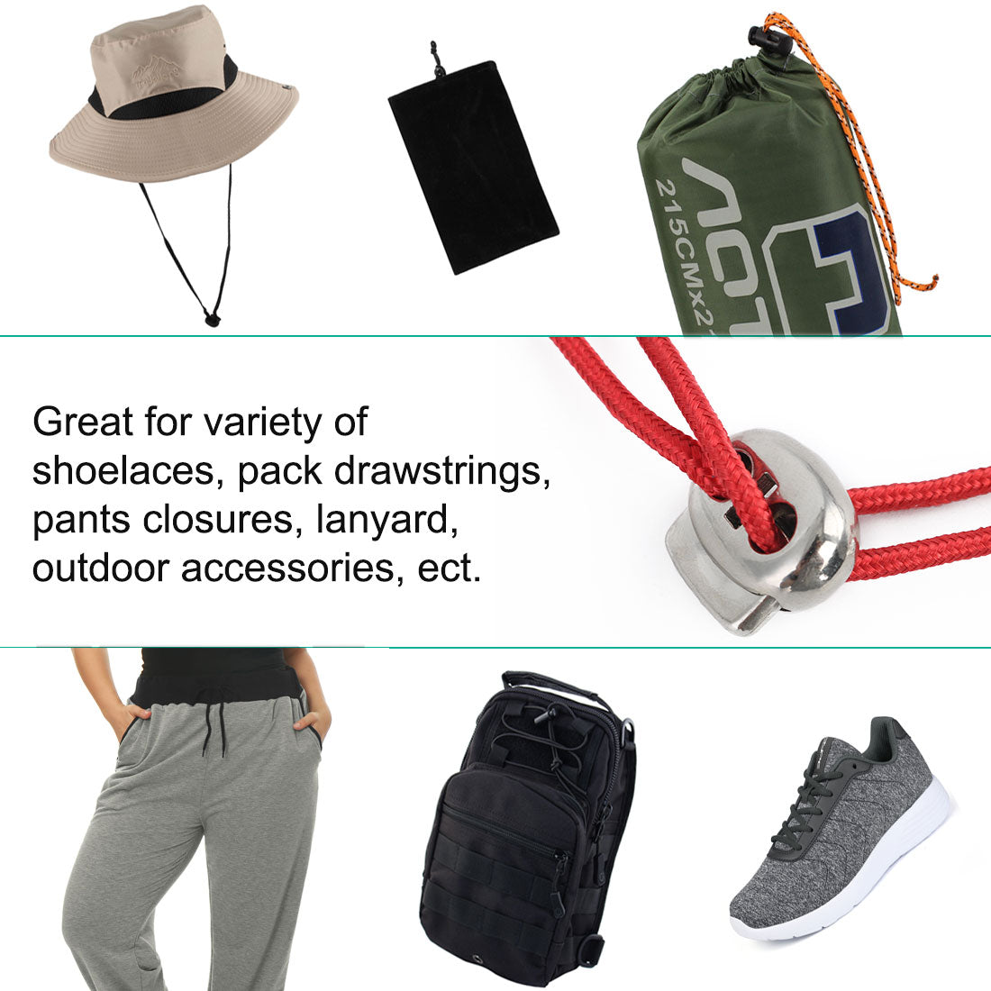 3. These cord locks fit a variety of different drawstrings and types of cords. Widely used on shoelaces, drawstrings, pants closures, lanyard, luggage, clothing, bag, backpack, sportwear, and a variety of outdoor and gym accessories.
