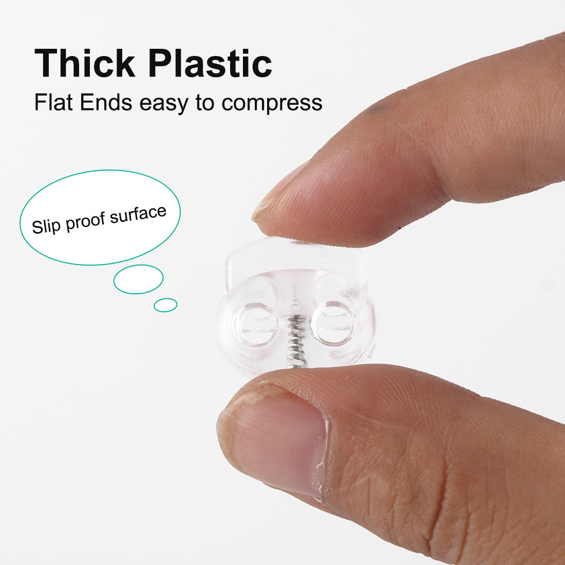 1. Made of plastic, durable and lightweight; The tough internal spring is built for long-lasting performance, flexible enough for easy use; Cord locks can be used in dryer or washing machine.