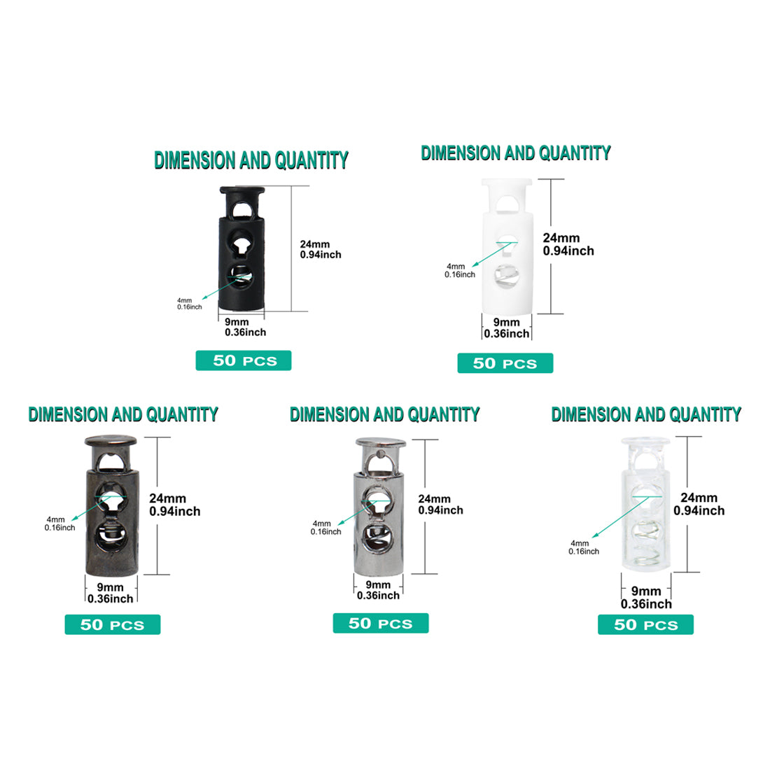 50pcs Plastic Spring Cord Locks Double Hole End Stoppers Fastener