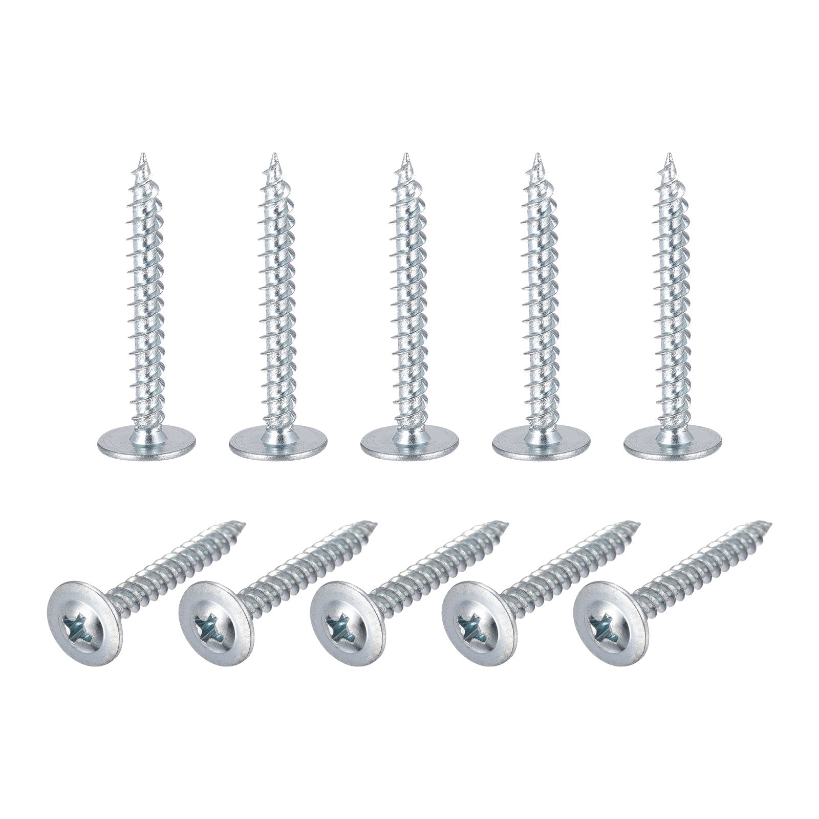 Specification: Material: Carbon Steel Finish: Blue Zinc Plating Thread Size: #8 x 1-1/4" Screw Head Size: 11 x 2.5mm / 0.43" x 0.1"(D*T) Package Content: 50pcs x Phillips Head Self Tapping Screws