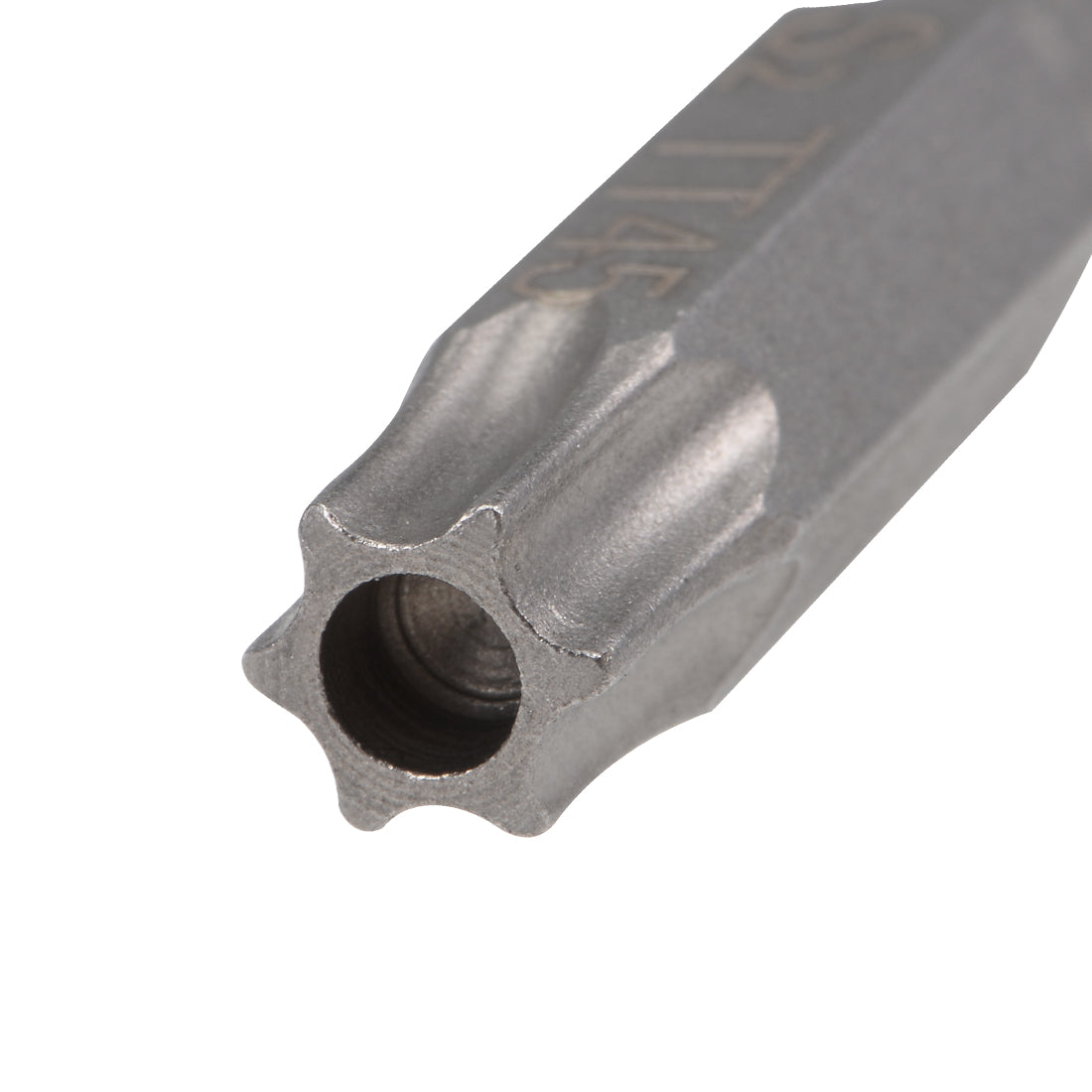 Specifications: Shank Size: (Hex) 1/4-inch Bit Type: T45 Total Length: 50mm / 2-inch Surface Treatment: Sandblasting Material: S2
