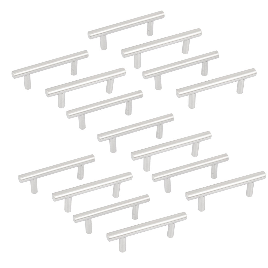 Polished silver tone Stainless Steel T Bar pull handle, 4mm dia screw mount, 64mm Mount Hole Center Distance, door, Cabinet, Drawer, Dresser, Wardrobe pull handle. Compact size, light weight, wonderful pull handle replacement for replacing your old or broken one.