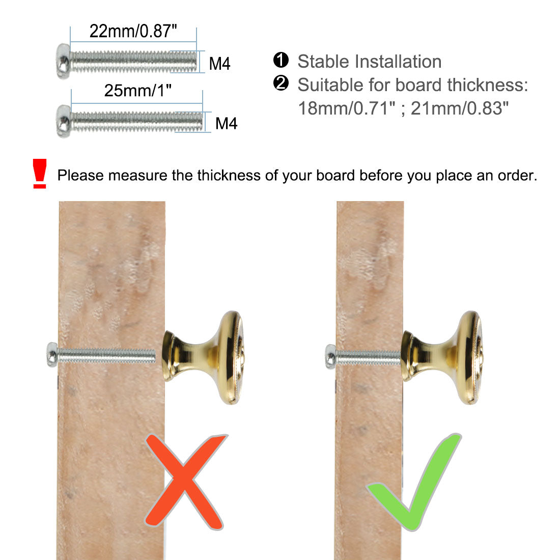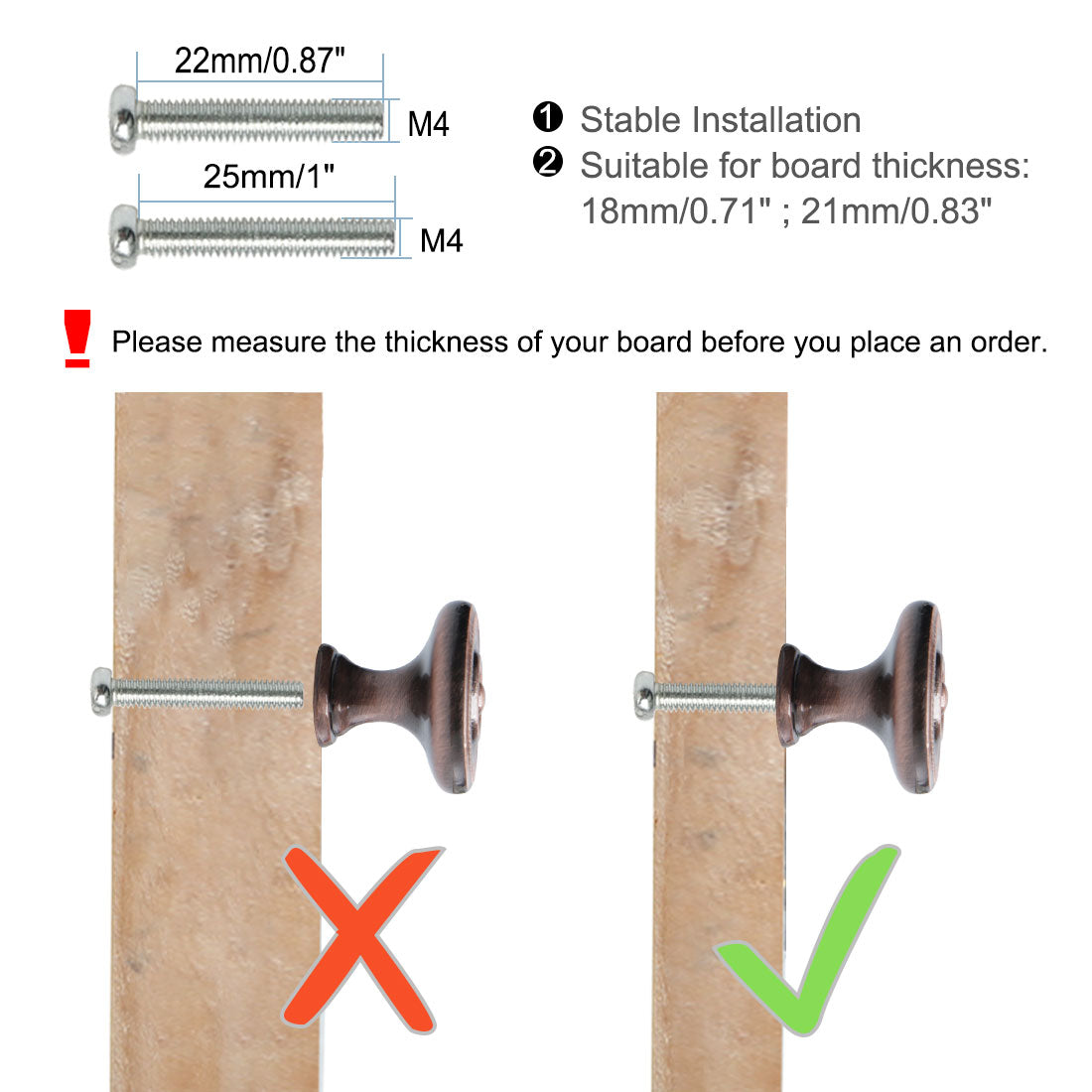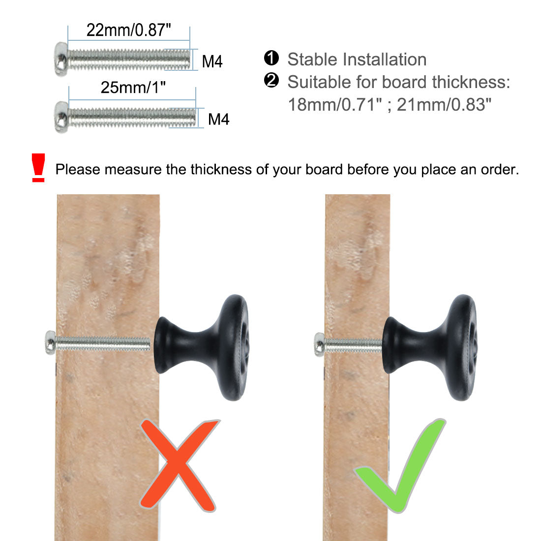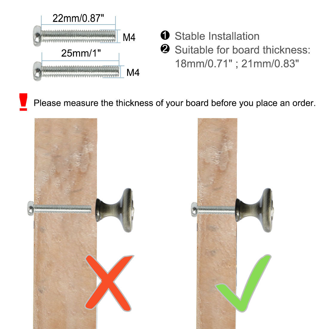 Package Content: 10 x Knobs, 20 x Screws; We provide two sizes of mounting screws for easy installation, which can be selected according to the thickness of the different boards. If the screws are not suitable, please prepare your own screws