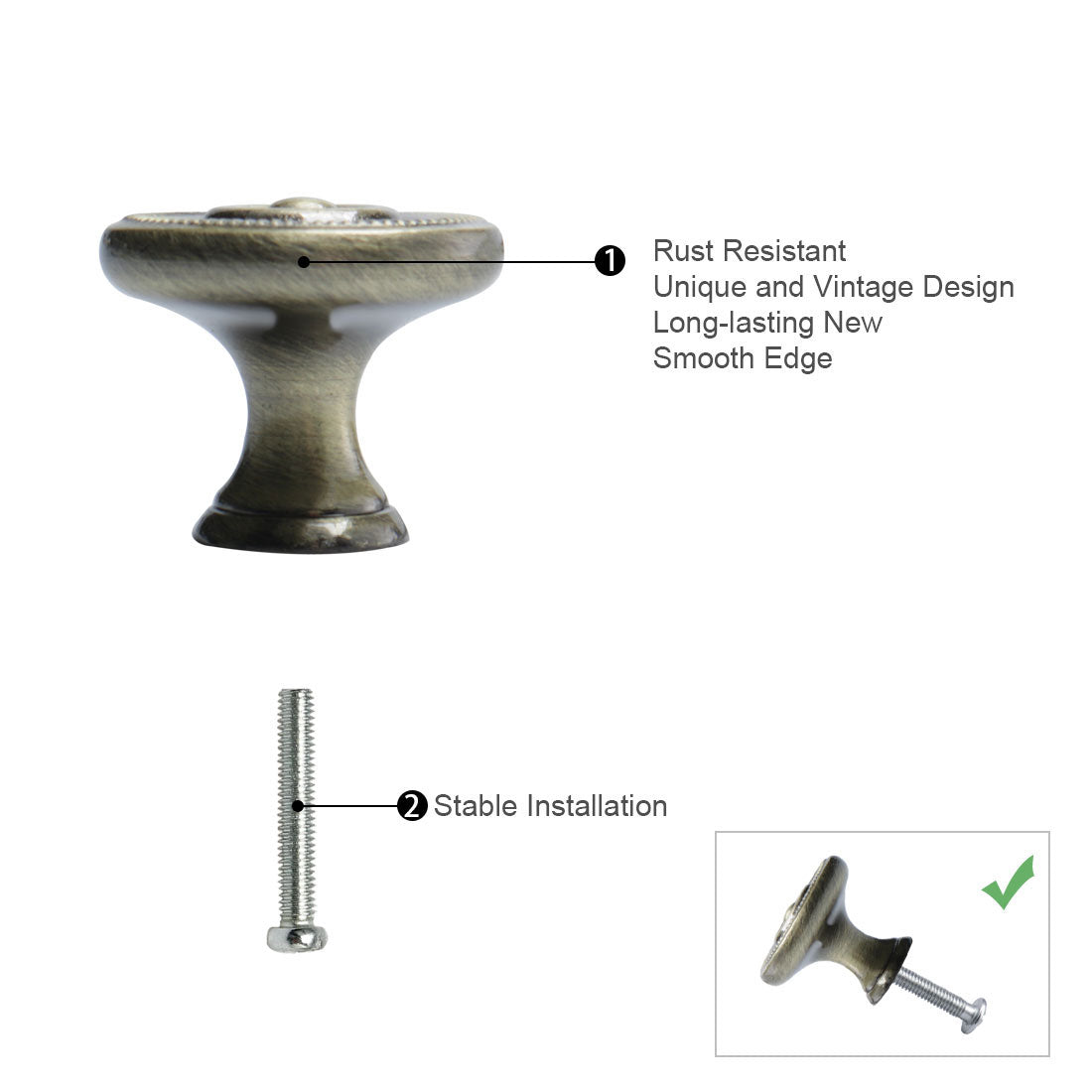 1. The knob were made of zinc alloy material, rust resistant, design is unique and vintage, long-lasting new, smooth edge, no fading, excellent workmanship.