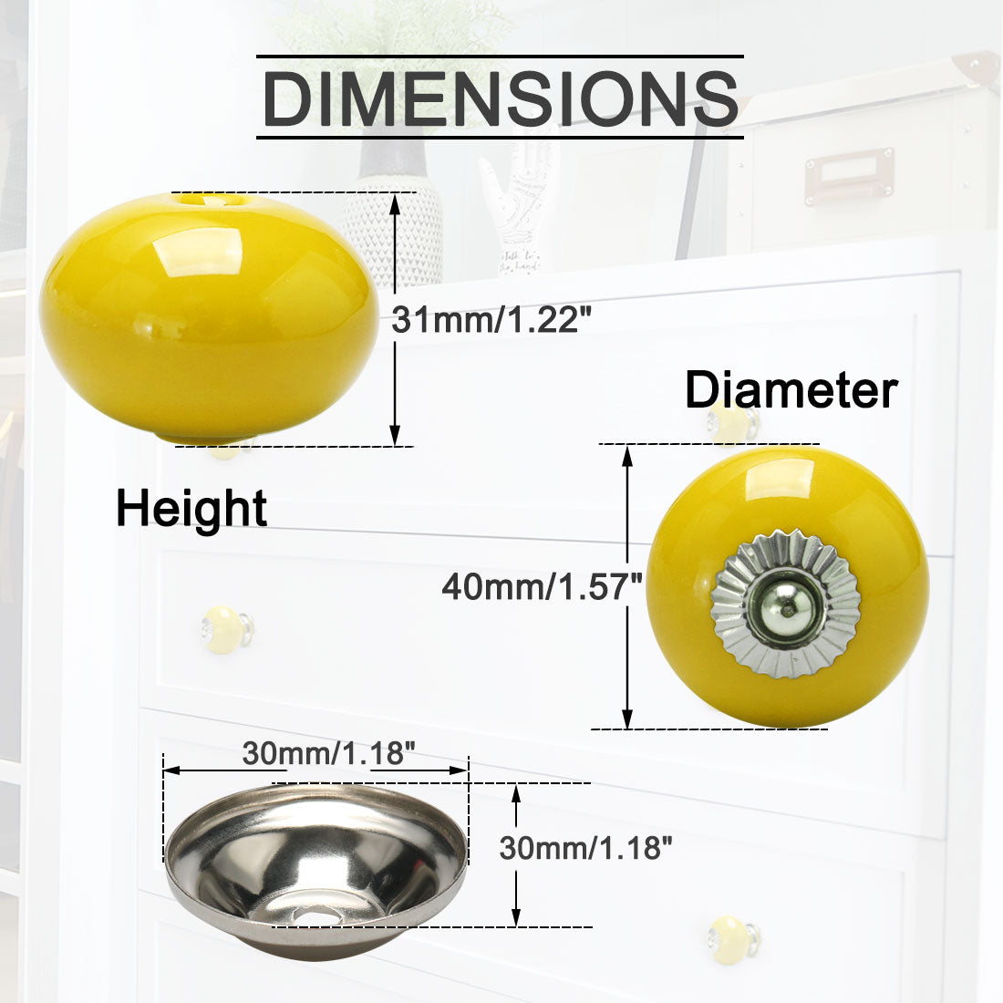 Check Size: Knob Height: 40mm/1.57"; Ceramic Knob Diameter: 40mm/1.57", Ceramic Knob Height: 31mm/1.22";Base Diameter: 30mm/1.18", Thread Diameter: 4mm/0.16"; Screw Thread Length: 25mm/1", Screw Rod Length: 30mm: 1.18" Fit for Board Thickness: within 17mm/0.67"