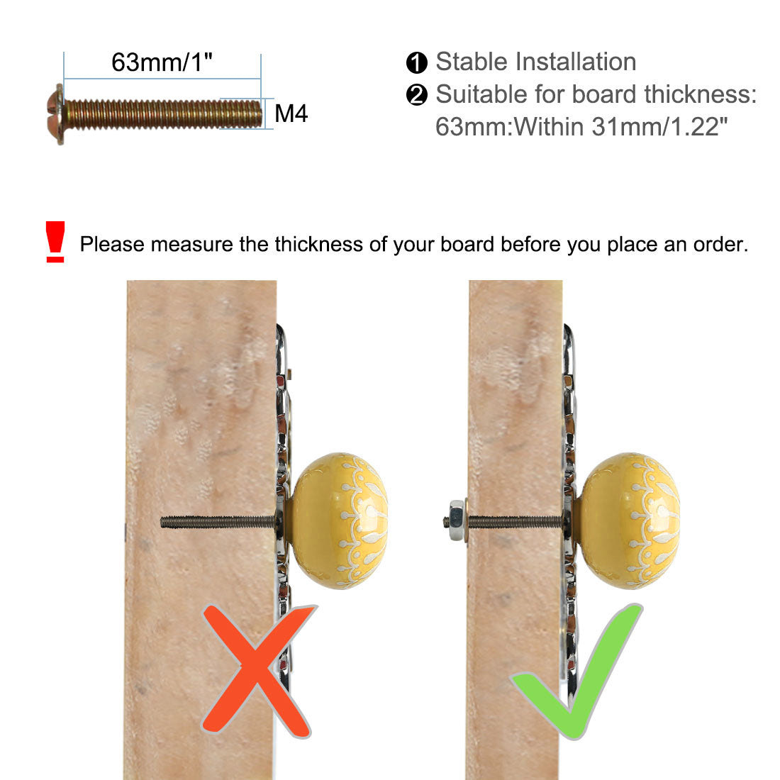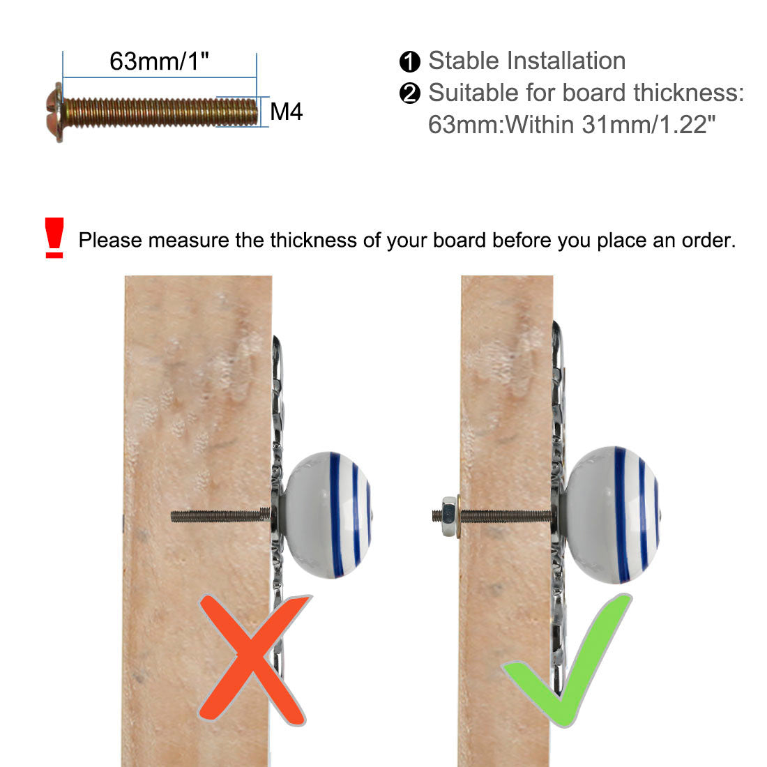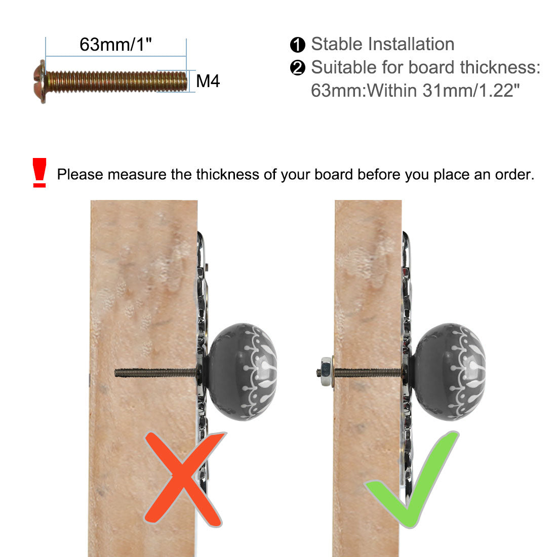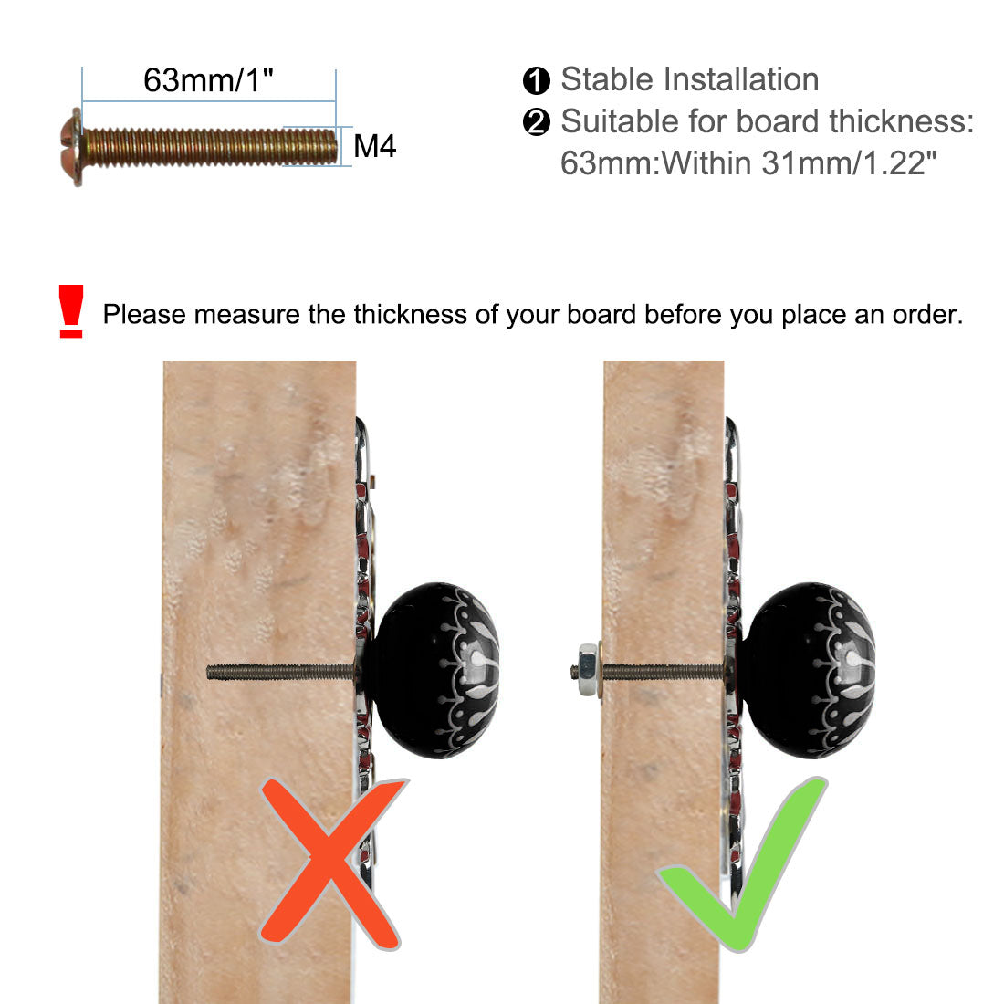 Fit for board thickness: Within 31mm/1.22"