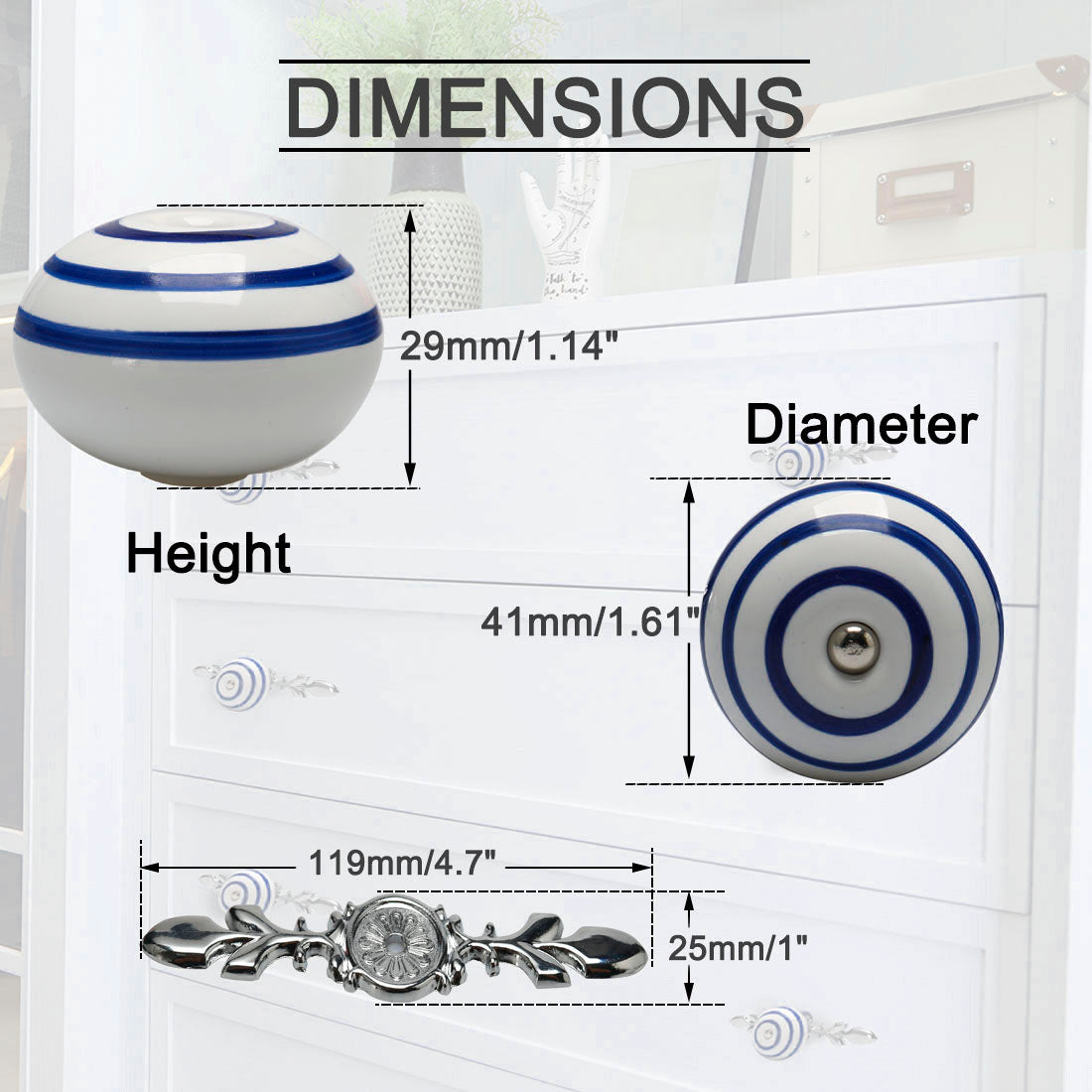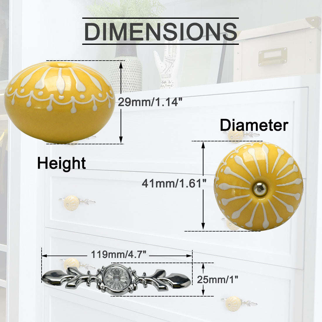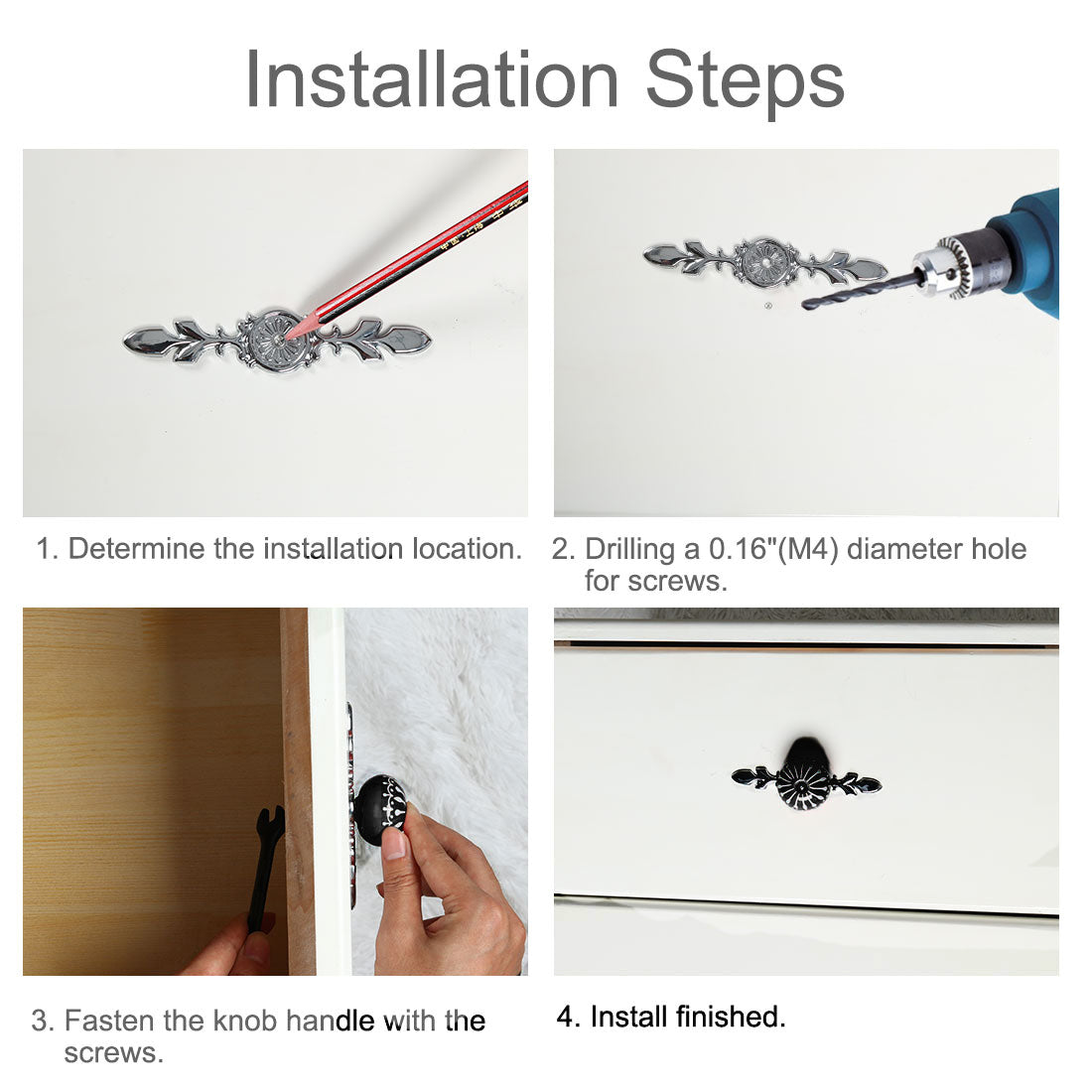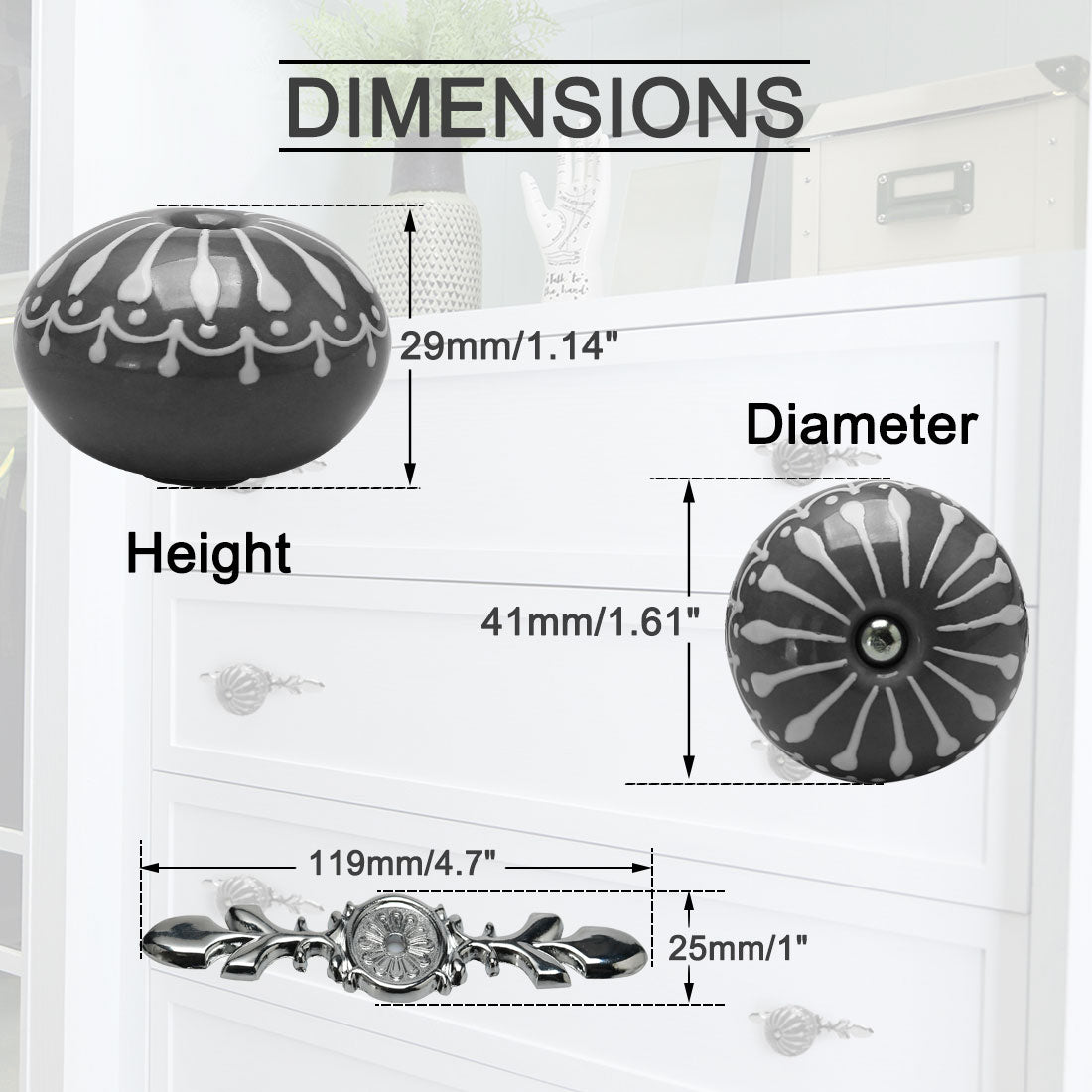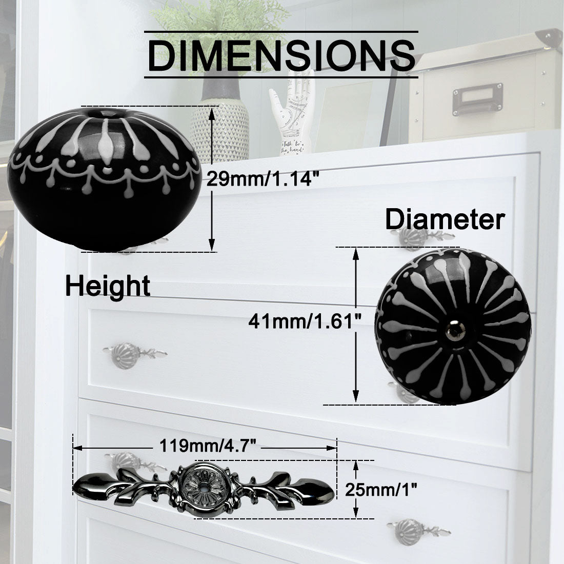4.Our vintage design knobs can be used on dresser drawers, kitchen cabinets and bathroom cabinets. Our decorative knobs will make any furniture look more elegant.