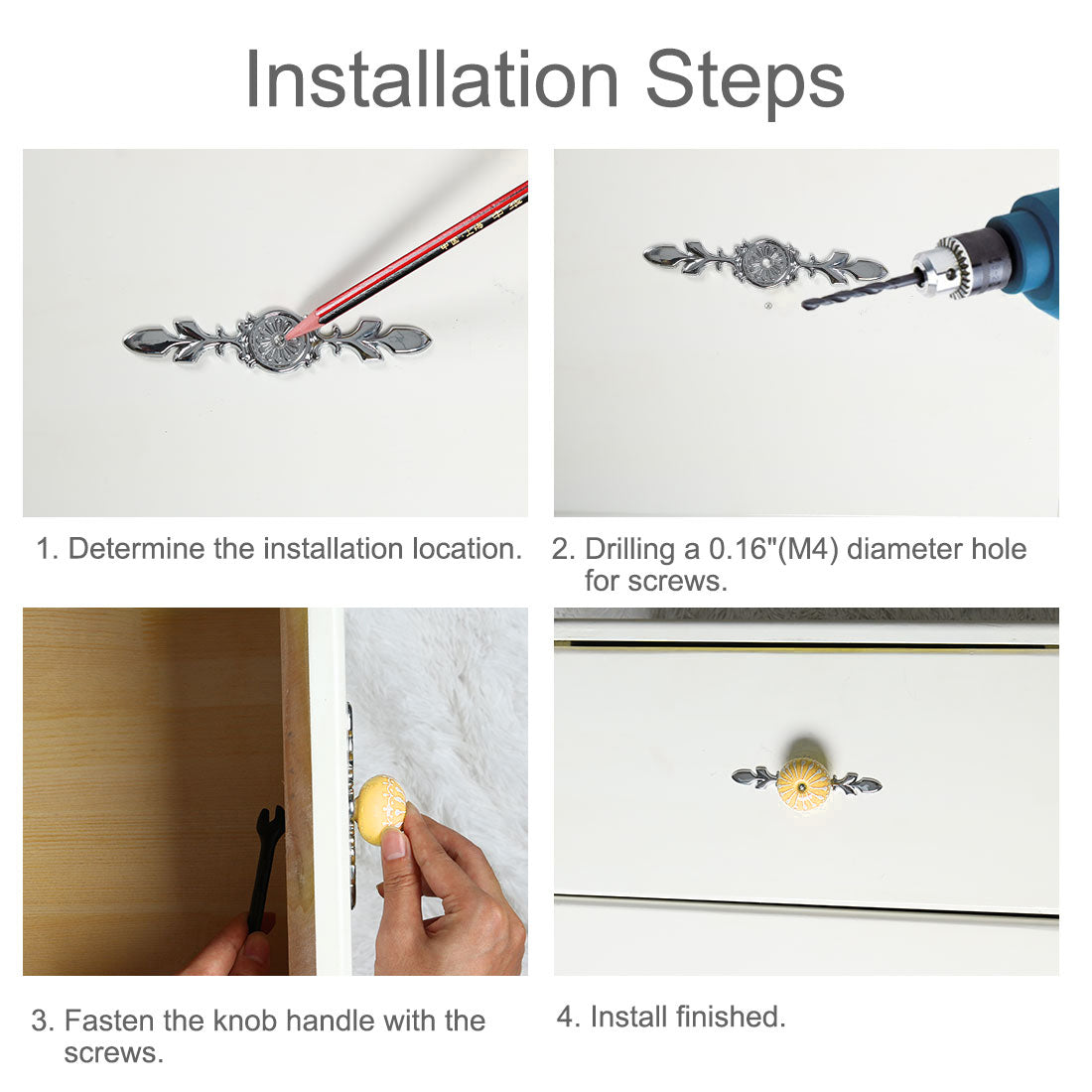 5.These knobs are easy to install. It is chic, practical, and economical, the small drawer knobs have recently been popular for decoration.