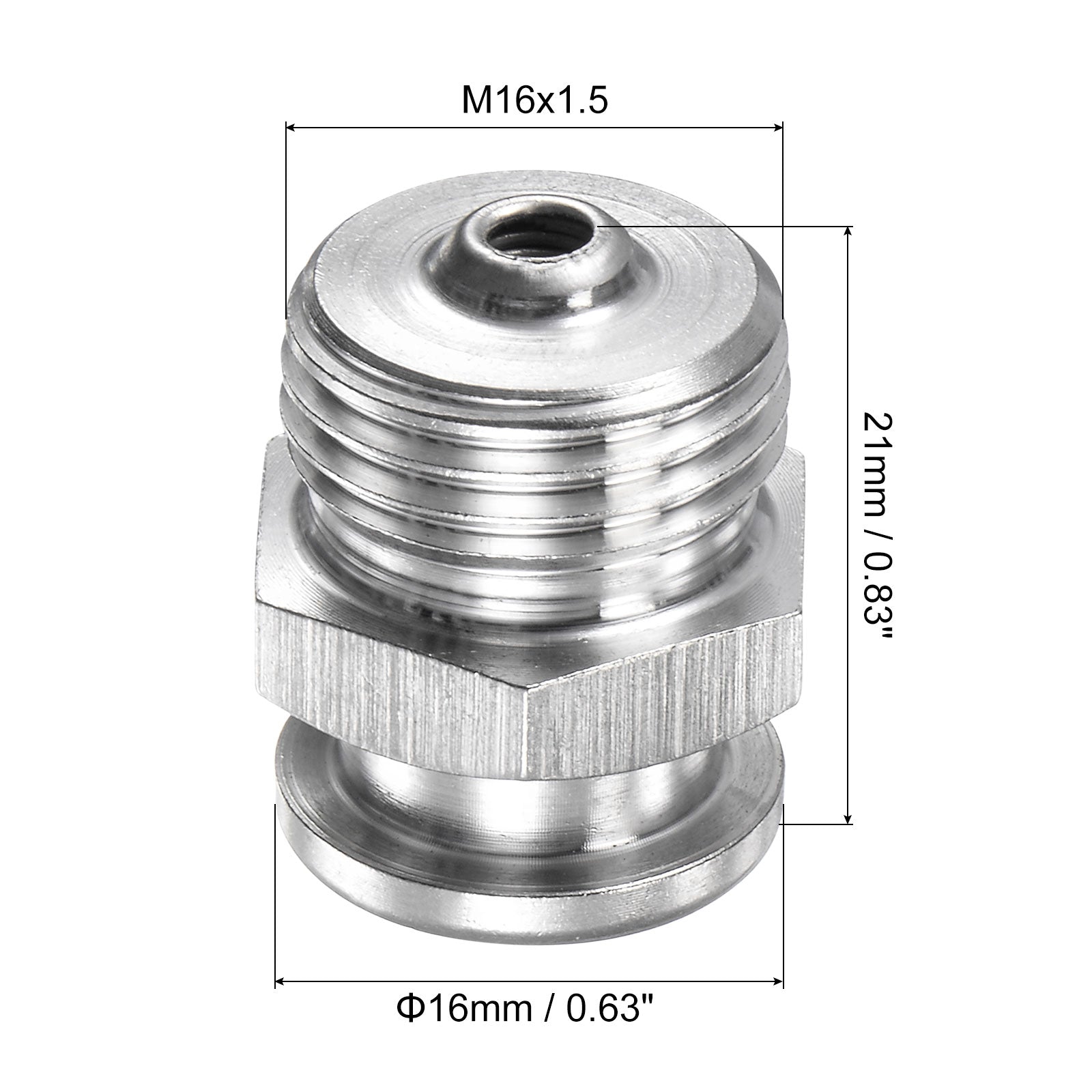 Specifications: Material: 304 Stainless Steel Thread Type: Male Thread Size: M16x1.5 Head Diameter: 16mm / 0.63 inch Total Height: 21mm / 0.83 inch
