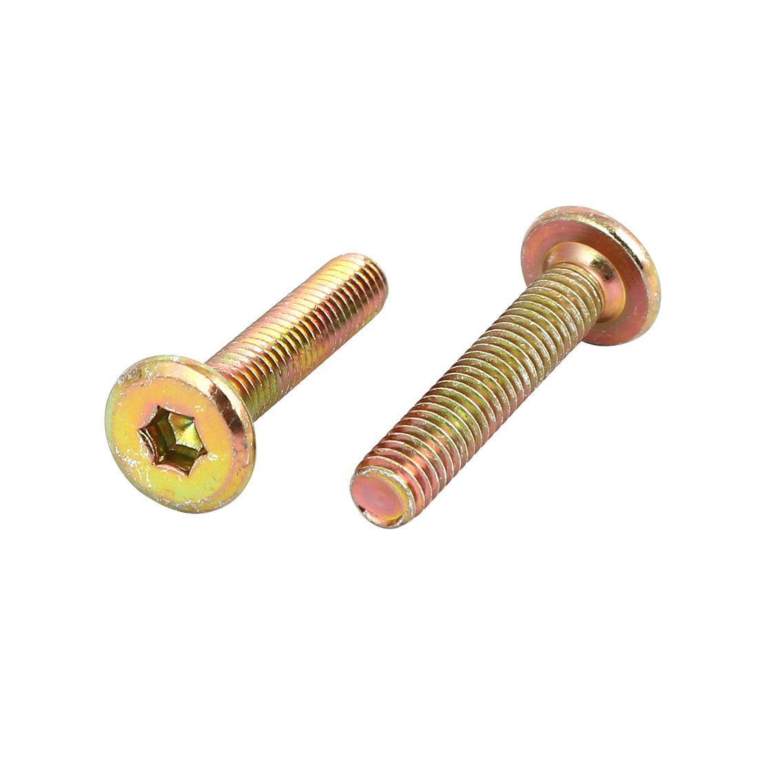 M6 hex socket cap furniture screw bolt,made of metal material in bronze tone color. Bolts for joining wood, boards, kitchen worktops, cabinets, cupboards and variety of other DIY projects.