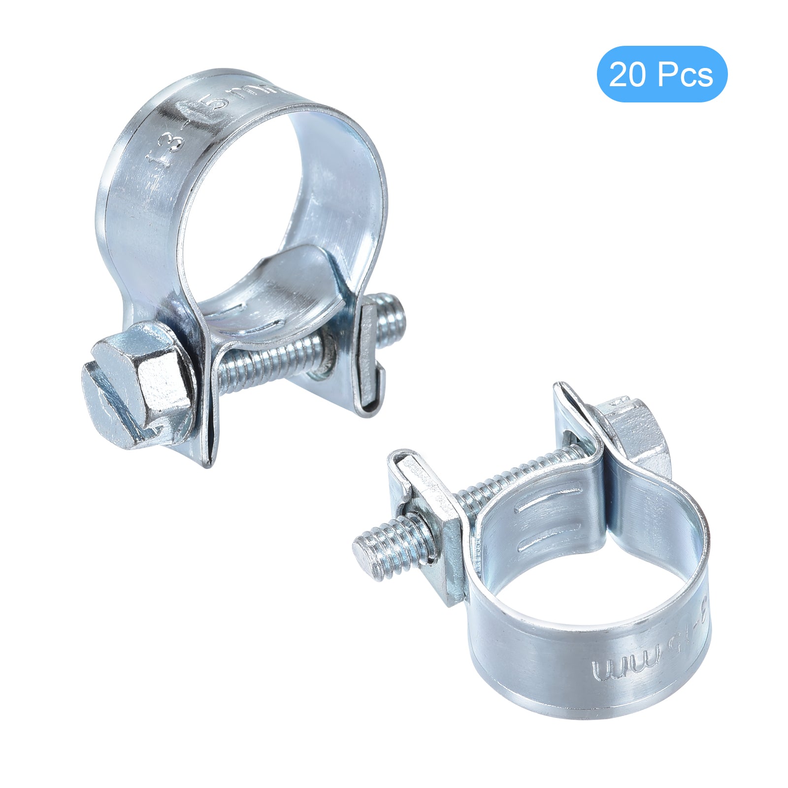 Specification: Material: Steel Finish: Zinc Plated Fit Hose Diameter: 13 - 15mm / 0.51" - 0.59" Total Size: 23 x 9 x 23mm / 0.91" x 0.35" x 0.91"(L*W*H) Material Thickness: 1mm / 0.04" Package Content: 20pcs x Fuel Injection Hose Clamp