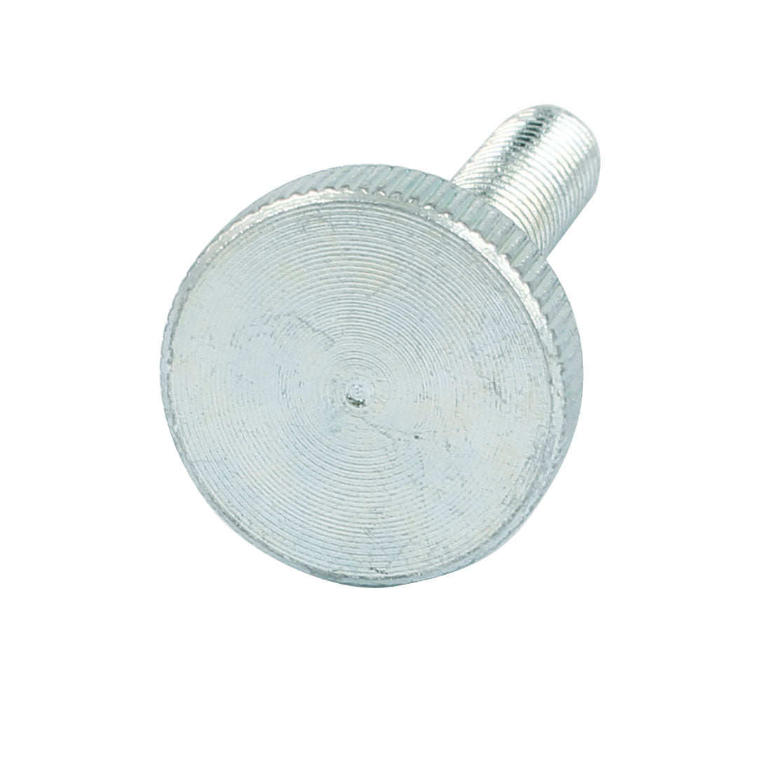 M8x35mm Round thumb screw with flat knurled head style. Knurled head provides extra grip for manual tightening. Usually found on thumb screws, a knurled surface on the head gives a better gripping surface, making it easier to tighten or loosen fasteners manually. Thumb screws are designed to be tightened and loosened by hand. Tools not necessary for tightening or loosening Knurled Thumb Screws are installed with your fingers and are used to hold light covers in place and other ornamental products.