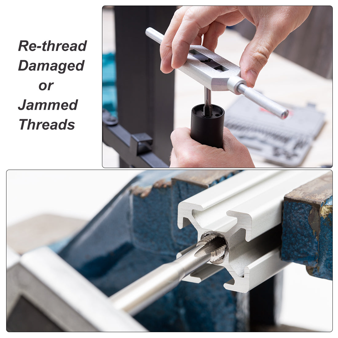 Hand tap is used to re-thread damaged or jammed threads, also be used to thread mild steels.