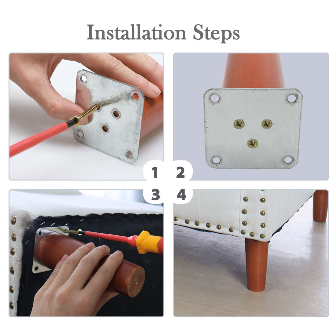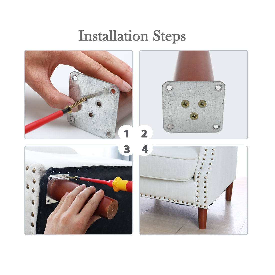 Our furniture leg made of wood material, sturdy and stable, each leg load-bearing 100Kg/220Ibs; we provide mounting plate and mounting screws