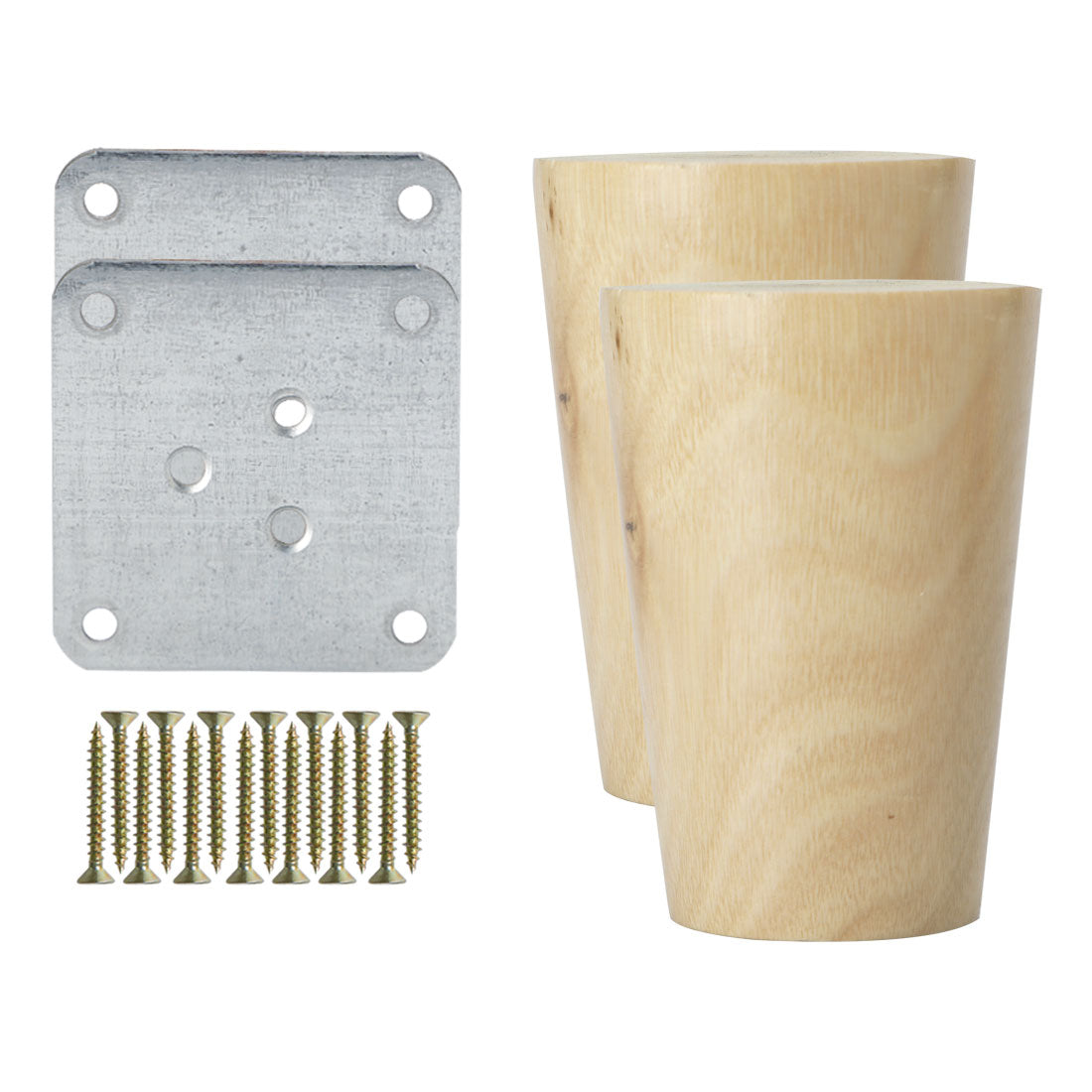 Easy to Install - Each pack including 2pcs 6" high, 2.2" top dia and 1.6" bottom dia wood furniture legs and 2pcs mounting plates and 14pcs 0.94" length screws for you to install, complete accessories, easy and convenient