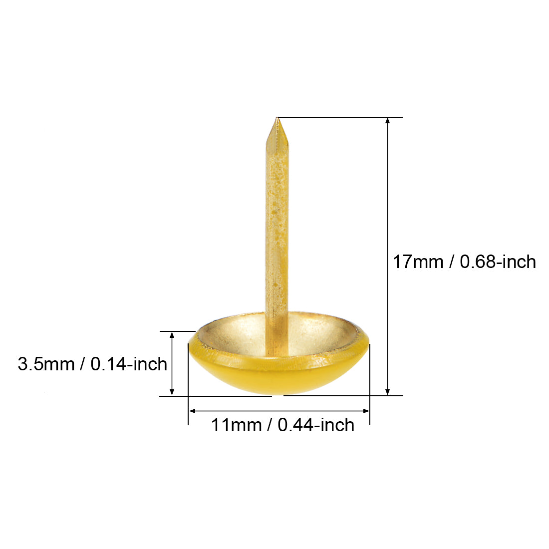 Description: * Decorative nail heads, also called upholstery tacks , are used to fasten upholstery material to furniture .* Suitable for hanging or holding down charts, banners, calendars and so on. Widely used for DIY home decoration, office, and restaurant, etc.* Please do not use any chemicals to clean nail heads, please just clean them with dry cloth. Specification: * Material: Iron* Color: * Head Diameter:* Head Height: * Total Length: Package Content: * Upholstery Nail Tacks
