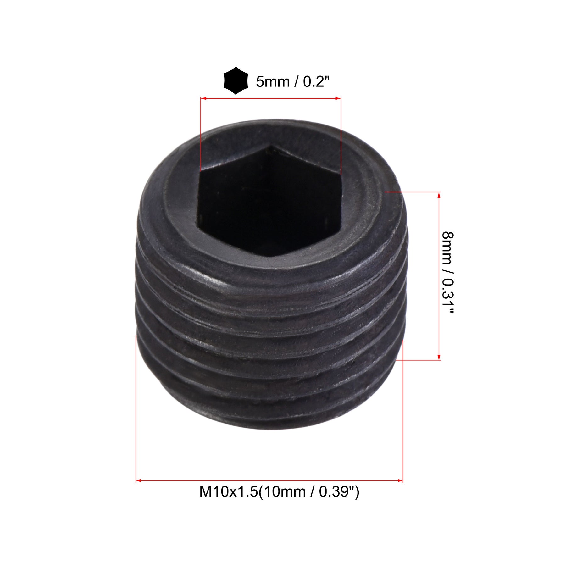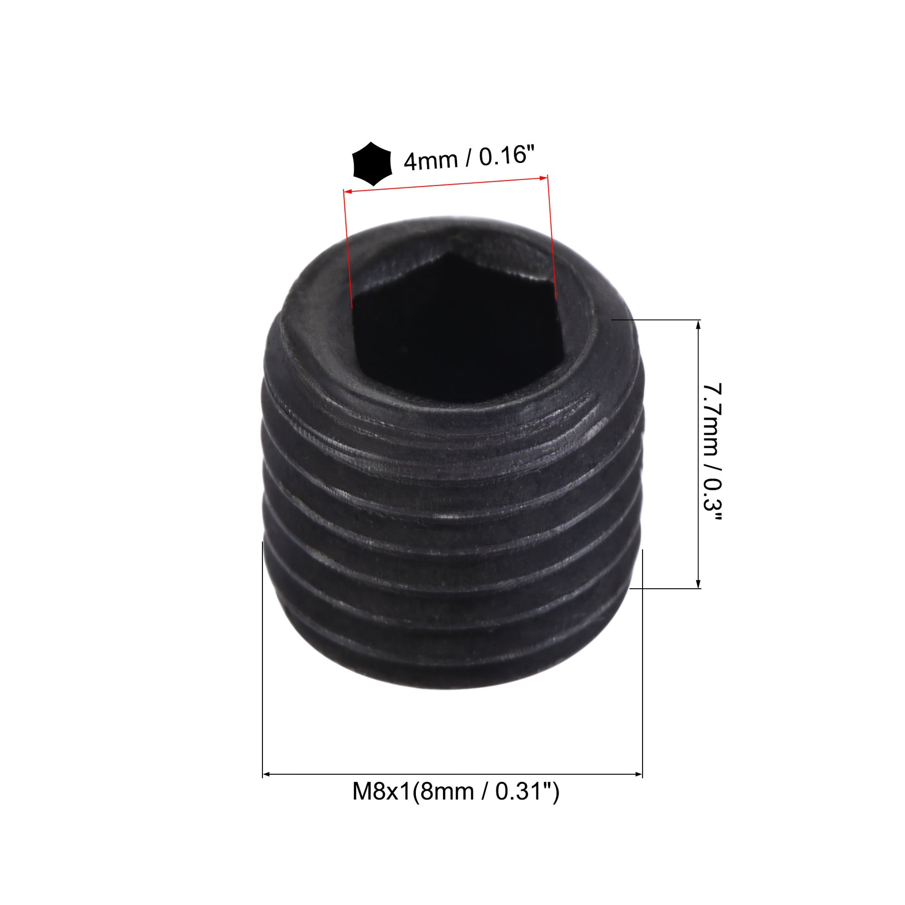 Specification: Material: Carbon Steel Color: Black Thread Size: M8x1 Internal Hex Width : 4mm / 0.16" Total Size: 8mm x 7.7mm / 0.31" x 0.3" (D*H)