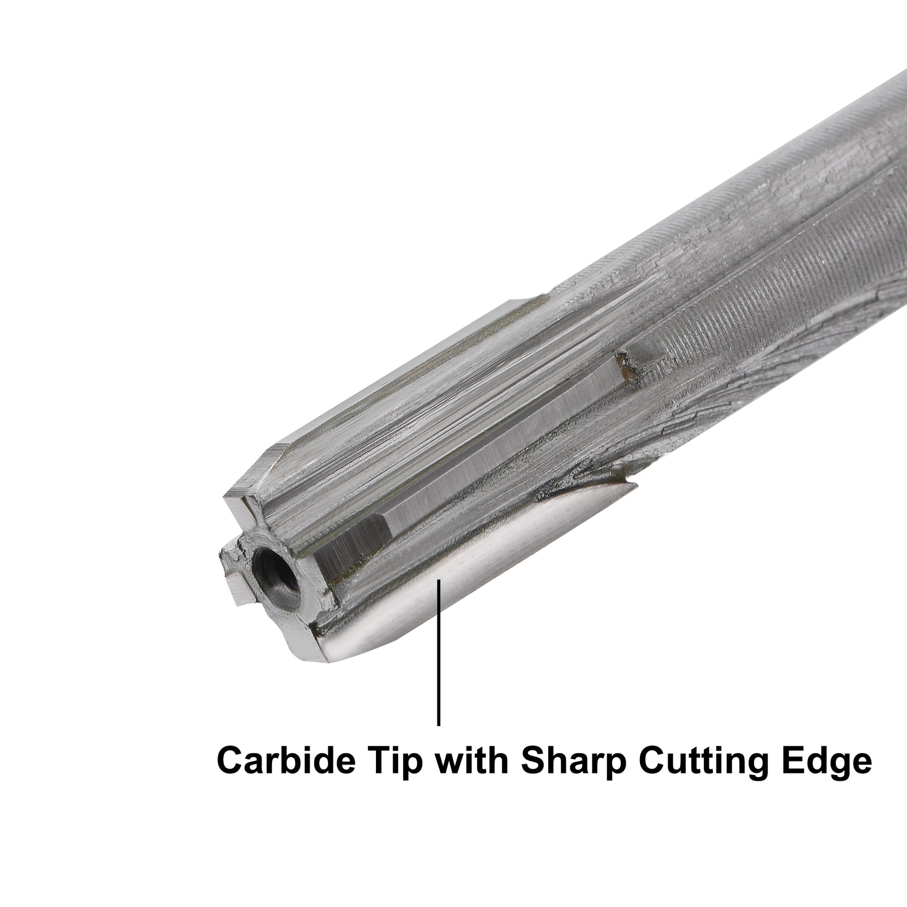 Descriptions: 1. Carbide tip with sharp cutting edge. High-speed steel tools are with combination of hardness and toughness for wear resistance, suitable for general purpose applications. Features and just the base substrate without any additional coatings, good for wide ranges of applications. 2. Chucking reamers can cut and remove the thin layer metal on hole surface that has been processed, mainly to improve the precision of holes and reduce the surface roughness. 3. Straight flute tools allow chips to collect in the flutes and can make shallow cuts in most applications. Chucking reamers (machine reamers) are used on lathes, drill presses and screw machines. 4. Straight shank reamers are designed for accurate reaming in stainless steel, aluminum, cast iron, copper, alloy steel, die steel, tool steel, plastic, wood, etc..