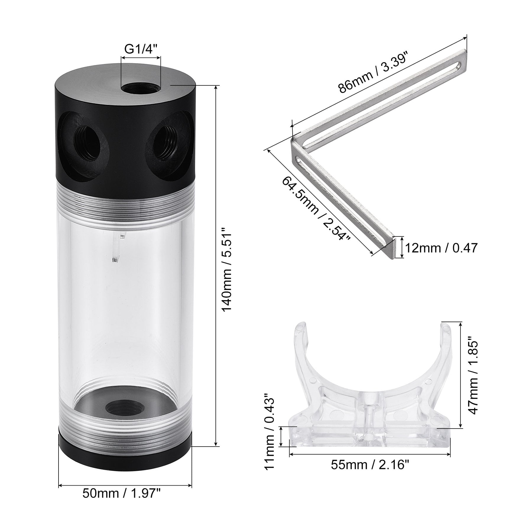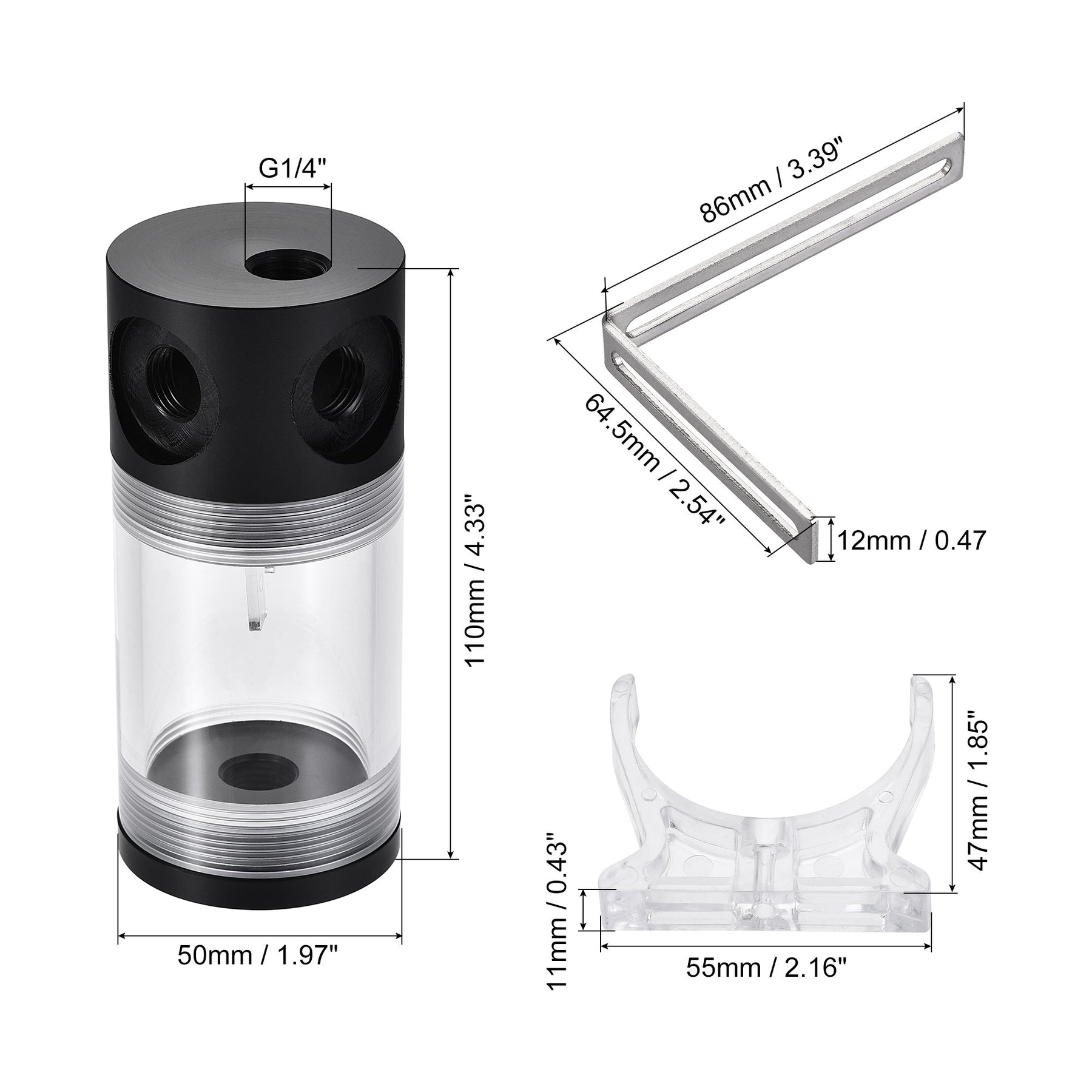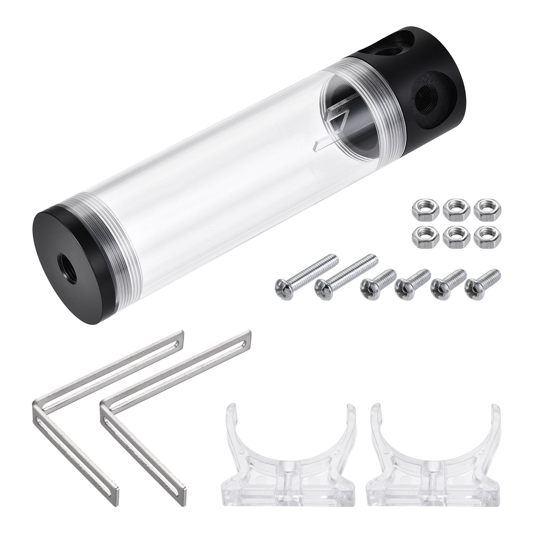 Description: The top and the bottom cap are made of POM, the clear cylinder is acrylic. The feature of the material POM is good temperature resistance. The part of threaded material is solid and durable, do not need to worry about cracking. The package come with the clear acrylic supports, the metal L shape mounting brackets and the screws.