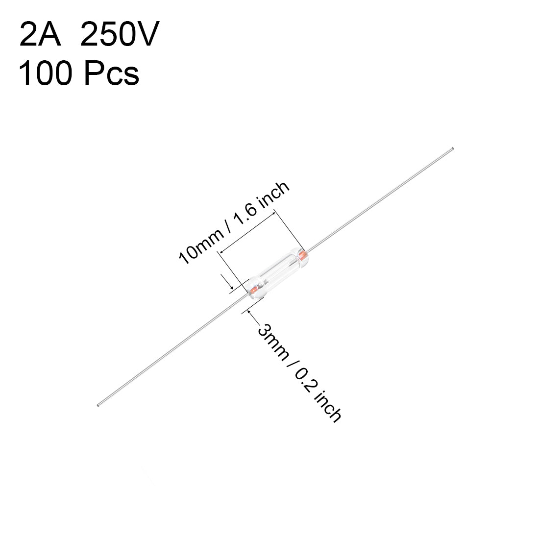 Glass Fuses Axial with Lead Wire 2A AC250V 3x10mm Fast Blow for Energy Saving Lamp Bulb 100pcs