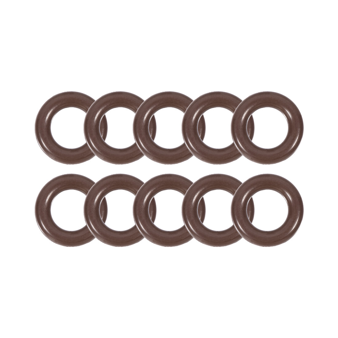 Specification: Color: Brown Material: Fluorine Rubber Hardness: 70A Durometer Working Pressure: 0.3 bar Outer Diameter: 11mm Inner Diameter: 6mm Cross-Section Diameter: 2.5mm Package Contents: 10 x Metric FKM O-Rings