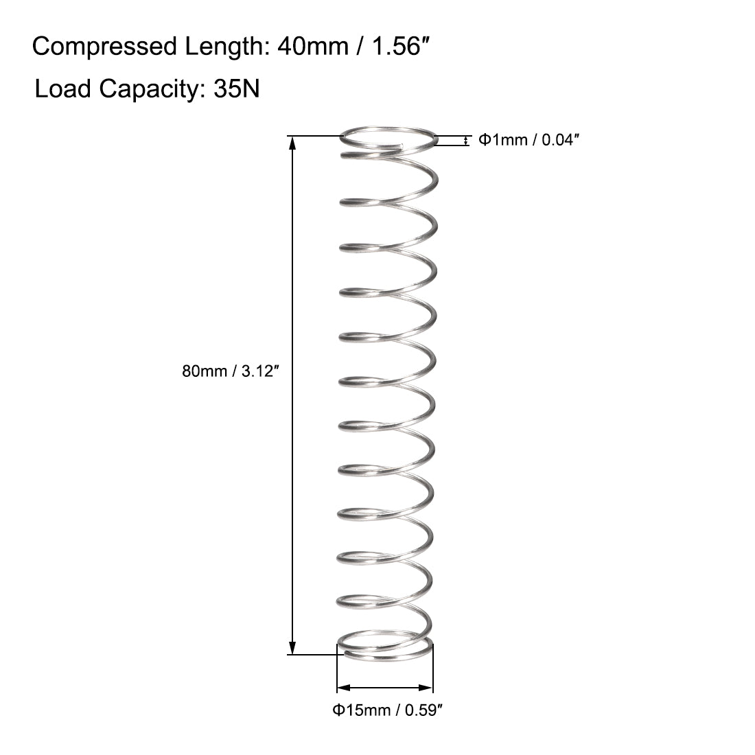 Harfington Uxcell 304 Stainless Steel Compression Spring 35N Load Capacity 10pcs