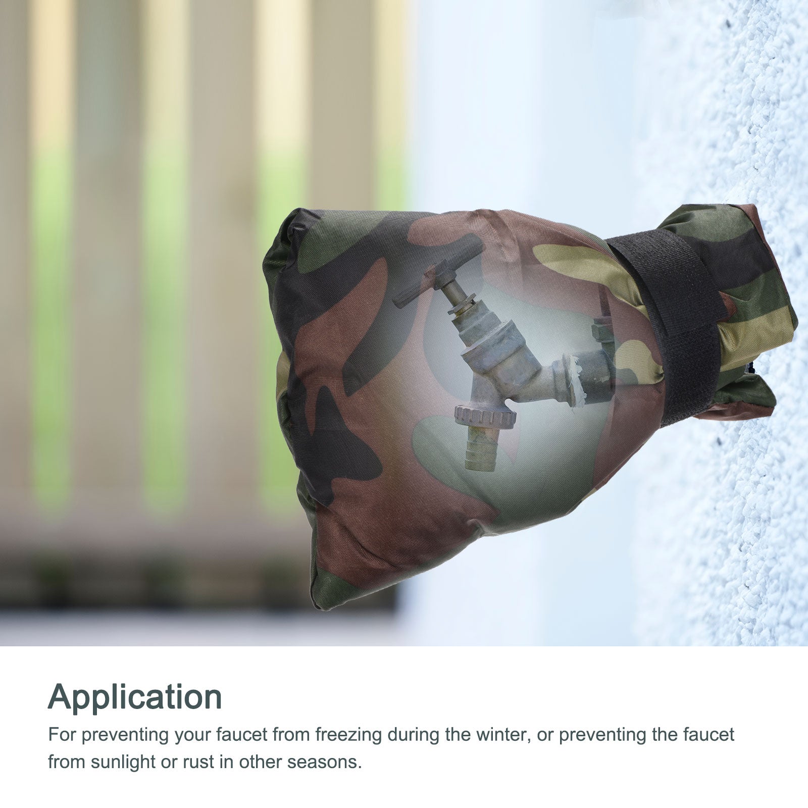 Color:Green Color:Green Size:7.1"x5.9" Size:7.1"x5.9" Color:Green Size:8.7"x7.1" Color:Gray Size:7.1"x5.9" Color:Gray Size:8.7"x7.1" Color:Camouflage Size:7.1"x5.9" Color:Camouflage Size:8.7"x7.1" What is this? Water Faucet Cover is used to prevent your faucet from freezing during the winter, works well with various faucet types, such as garden spigots, water tap, etc.