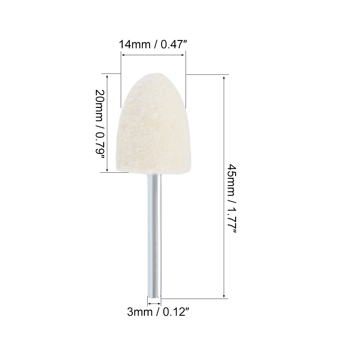 14mm Wool Felt Mounted Points Tapered Polishing Buffing Wheels 16 Pcs