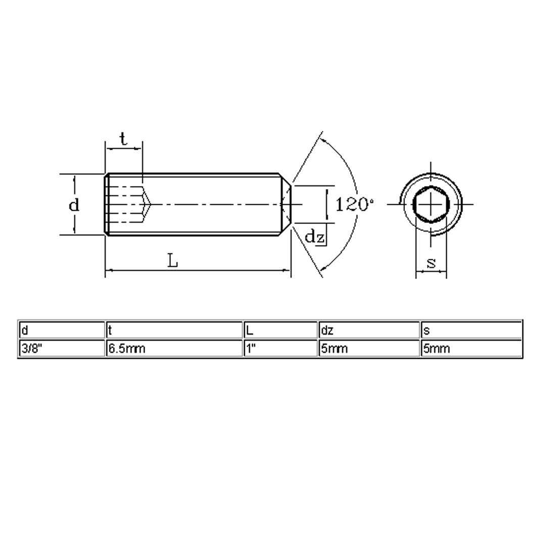 12.9 Grade 3/8"-16 x 1" Thread Hex Socket Cup Point Alloy Steel Grub Screws 10 Pcs