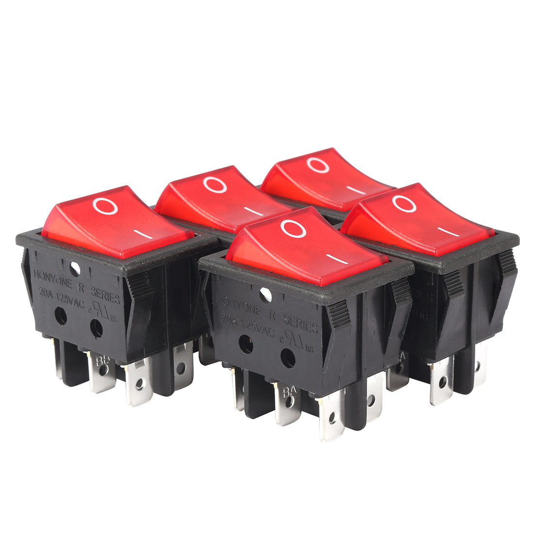 Uxcell 5Pcs AC 20A/125V 22A/250V DPDT 6P 2 Position Red neon lamp Light Boat Rocker Switch