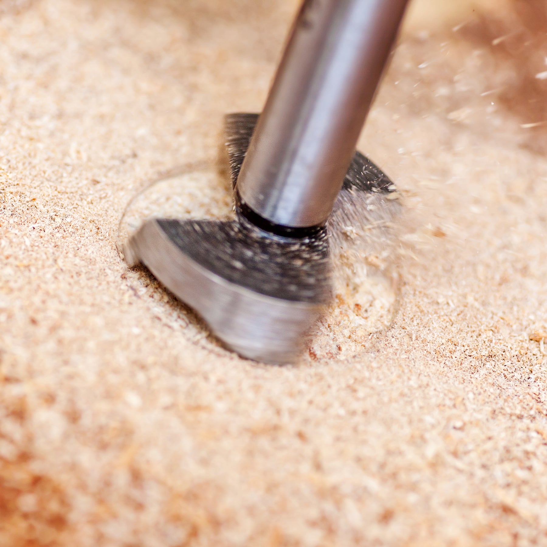 The tip is specially designed to cut through hole cleanly, great for boring concealed hinges and door locks.