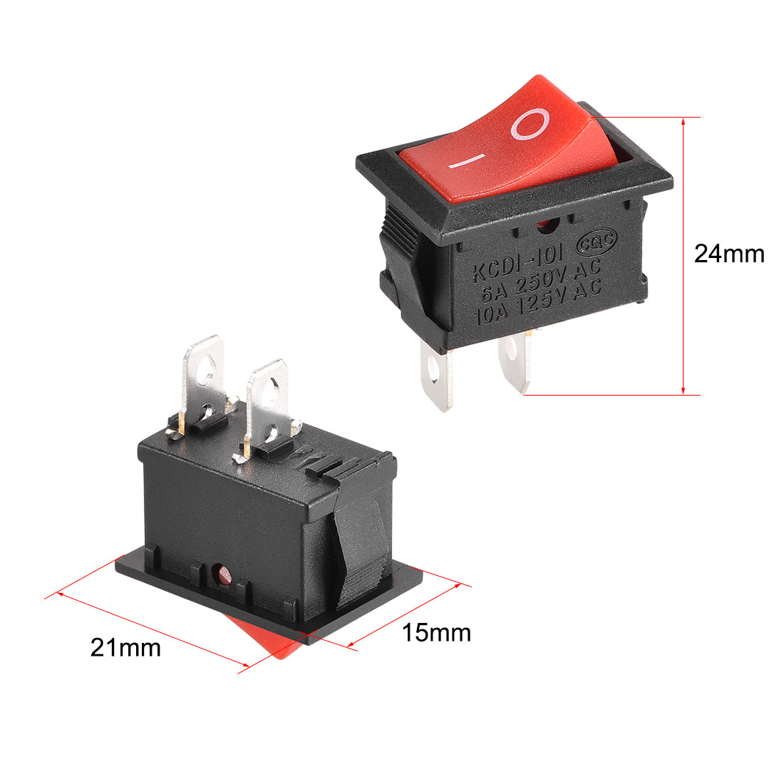 【Product Specification】Control Type:SPST;Terminals: 2;Position: 2 ON/OFF;Rating Voltage: AC 250V/6A 125V/10A;Light Voltage: NO light include;Total Size ( size measuring do not include the Waterproof case):21*15*24mm(L*W*H);Mounting Size: 18.5*11.5mm(L*W);Action Type: Latching;Color:Black Red
