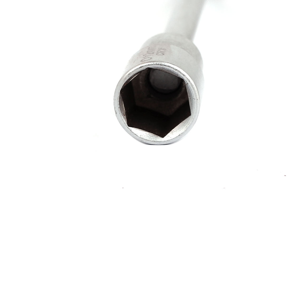 12mm Hex socket size, 150mm long shaft, 260mm total Length. This Hex Socket Wrench is made from CR-V and plastic material. Its handle is comfortable to hold. The Hex Socket Wrench features positioning nut, adjusting screw rod, lock nut.