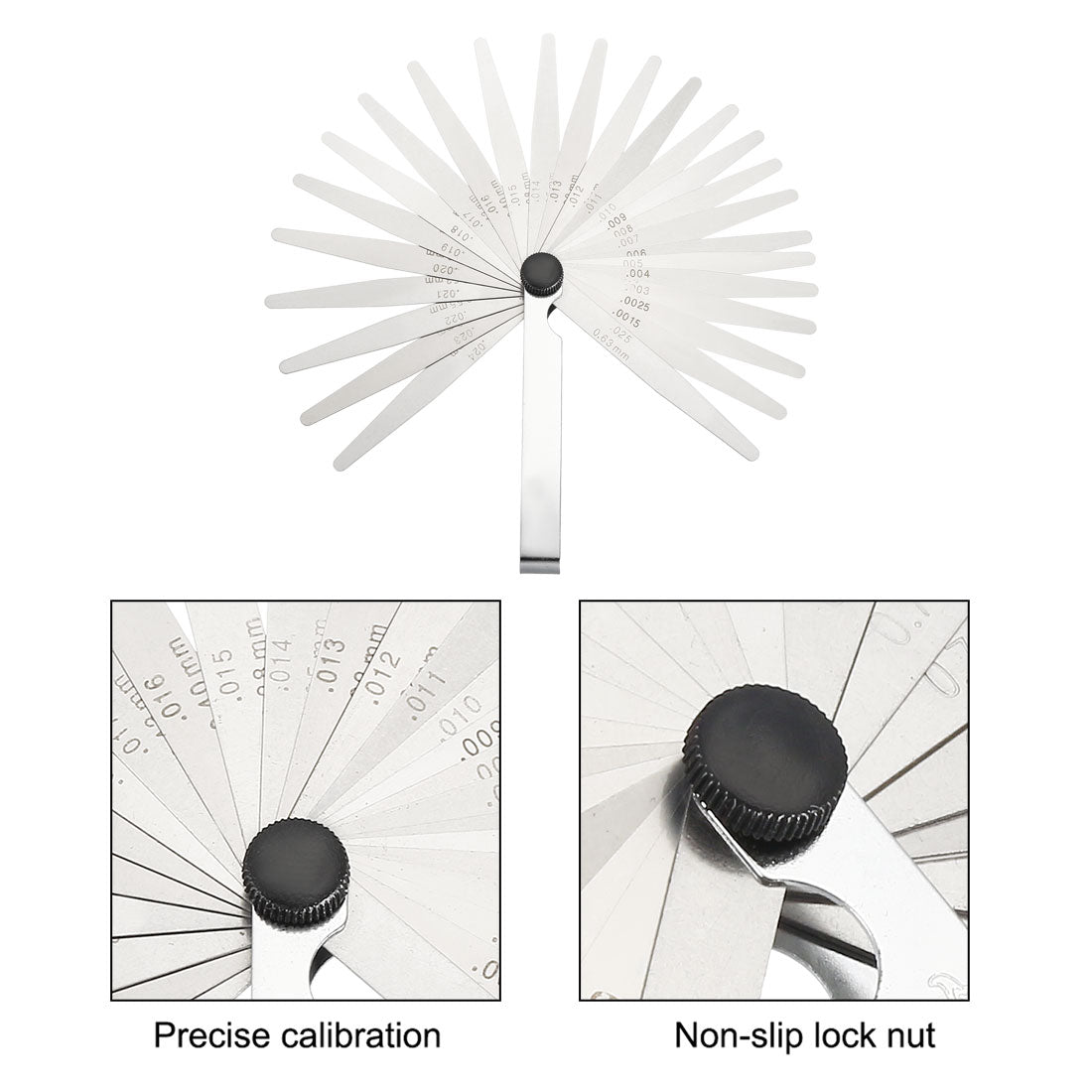 Suitable for designers, engineers, mechanics to measure the thickness of tappet clearances, spark plugs gaps, bearing clearances, piston ring gaps and other.