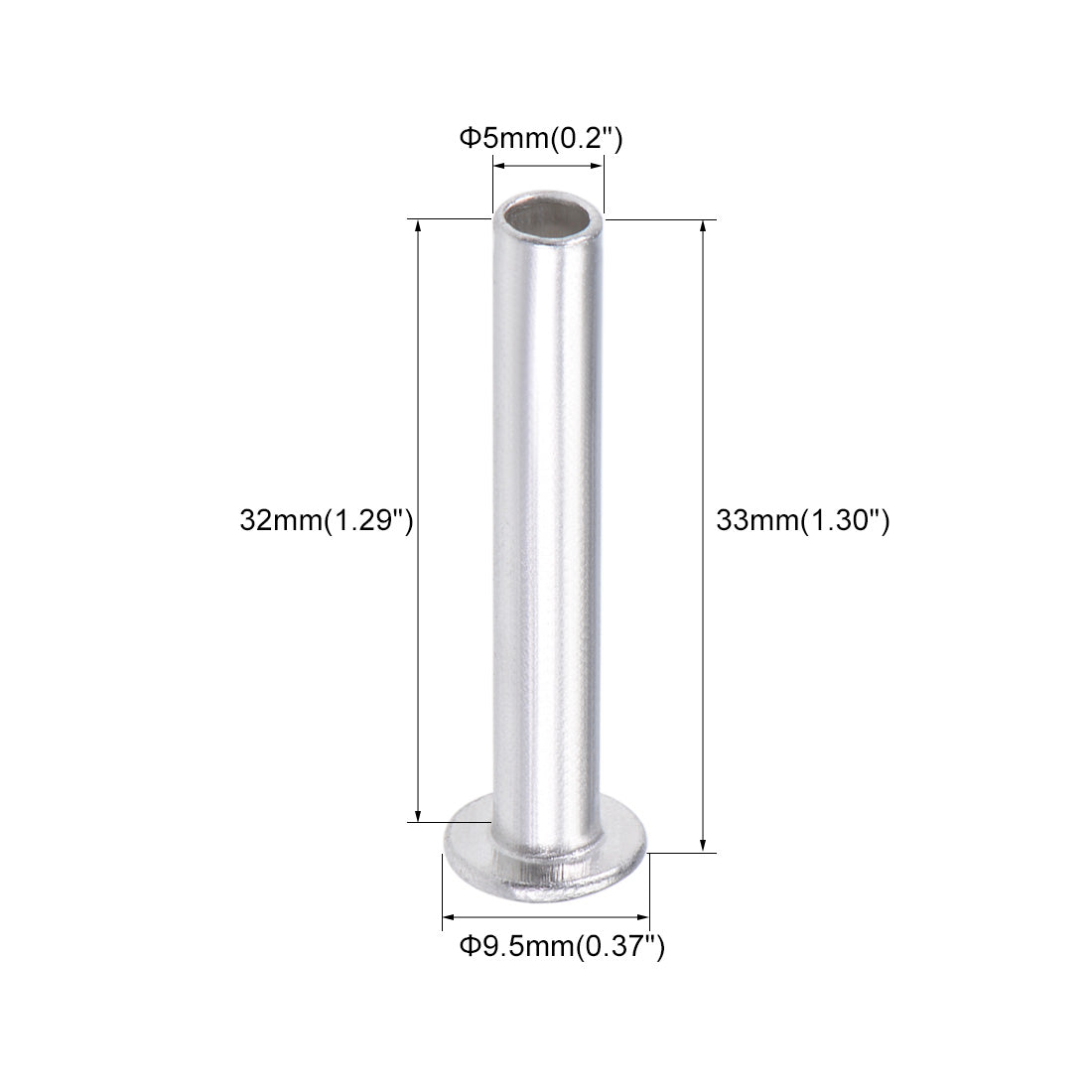 Semi-Tubular Rivets (also known as Tubular Rivets) are similar to solid rivets, except they have a partial hole (opposite the head) at the tip. The purpose of this hole is to reduce the amount of force needed for application by rolling the tubular portion outward.