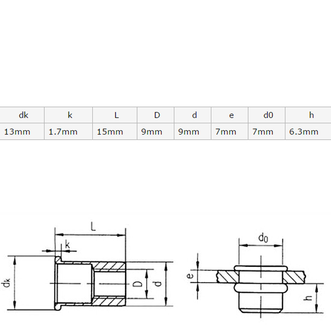 M6 Aluminum Flat Head Rivet Nut Insert Nutsert Silver Tone 50pcs