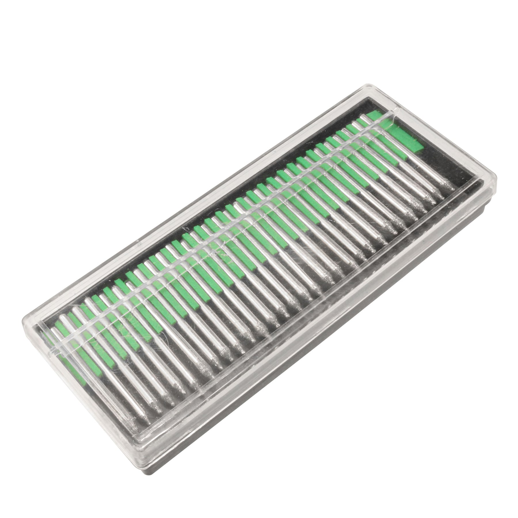 30 Pcs diamond ball shape point bit set in a protective plastic case, can be used for a variety of hole making and grinding tasks in glass, ceramics, porcelain, plastics.