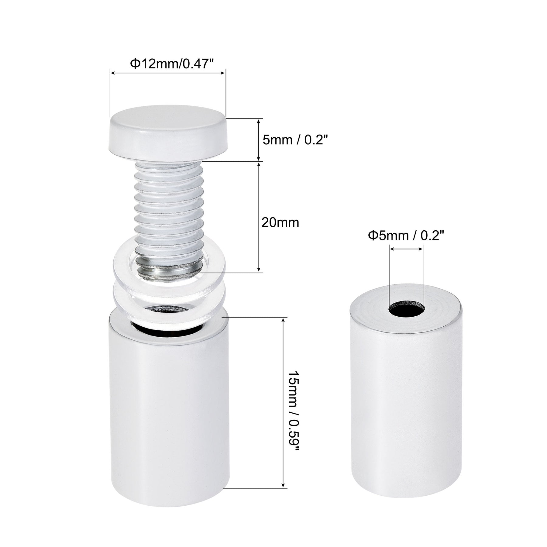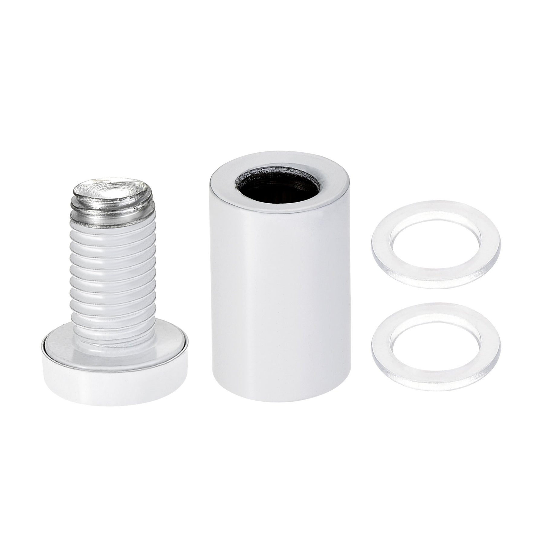 Specification: Material: Stainless Steel Surface Treatment: Varnish Color: White Total Size: 12 x 27mm/ 0.47" x 1.06" (D*L) Thread Size: M8 x 20mm(D*L) Bottom Hole Diameter: 5mm / 0.2" Screw Nail Cap Thickness: 5mm / 0.2" Elevates Signage Height: 15mm / 0.59"