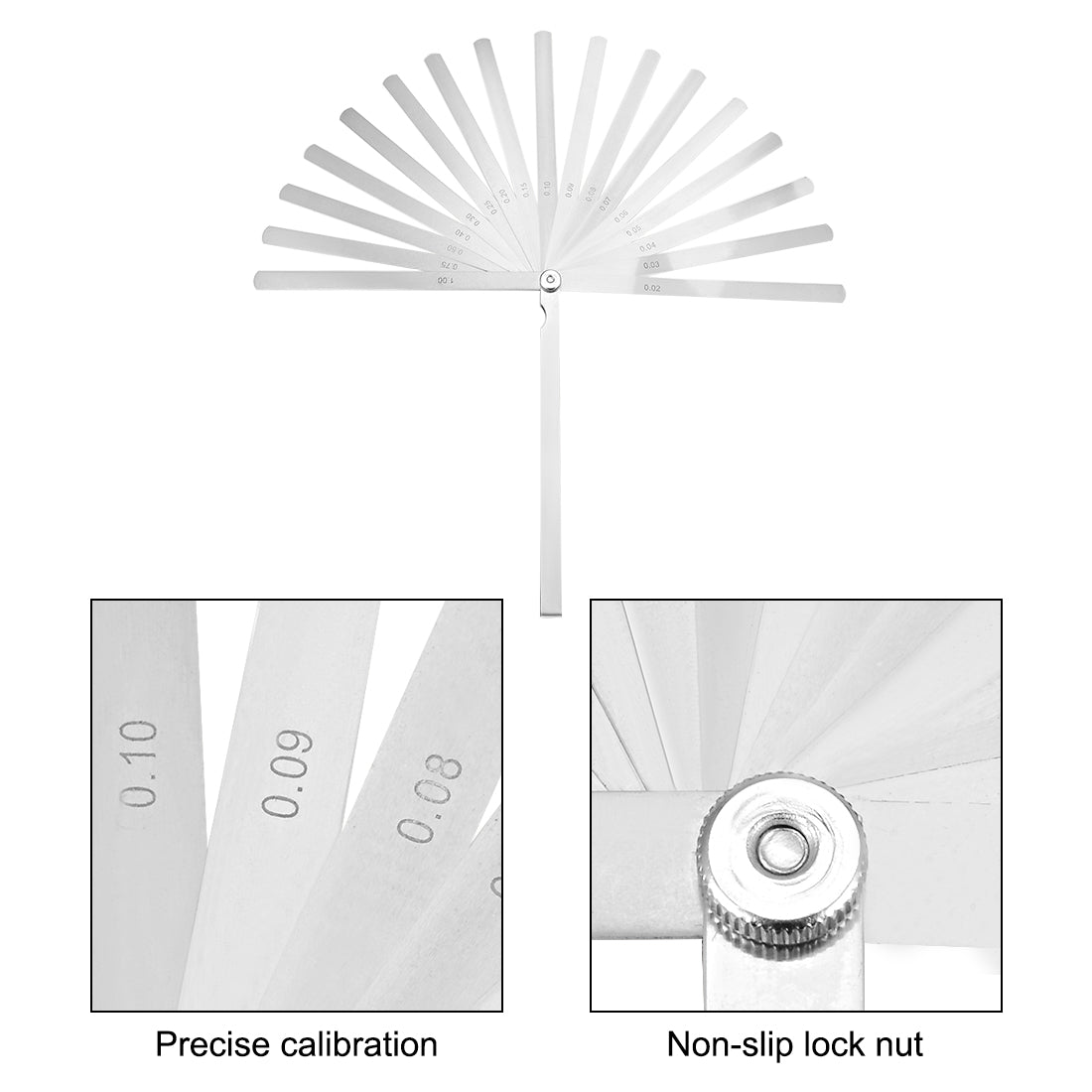 Suitable for designers, engineers, mechanics to measure the thickness of tappet clearances, spark plugs gaps, bearing clearances, piston ring gaps and other.