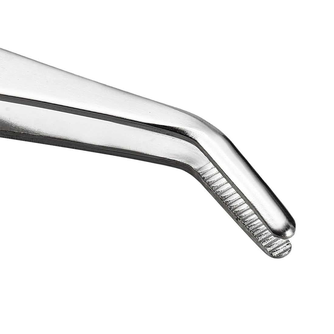 Description: 1. 5.5-Inch (140mm) Stainless Steel Tweezers. 2. The 430 stainless steel construction resists corrosion for long life use. 3. Serrated tips ensure a tight grasp and the knurled handle helps you to keep a steady grip. 4. Handle design is ergonomic which is not too big or too small and fit for your hand. 5. This product can be used for a variety of household, work, craft, and hobby uses.