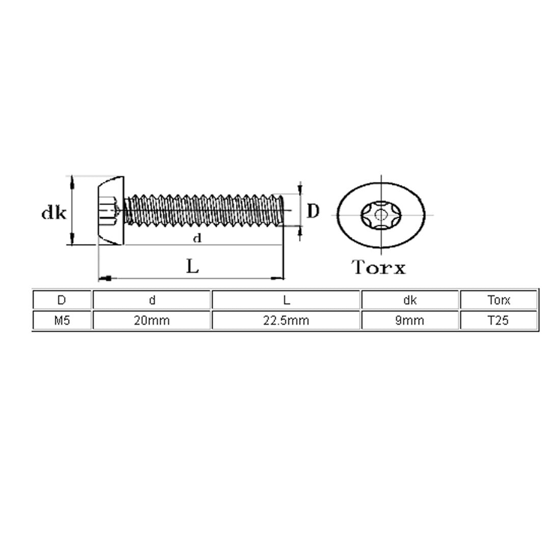 Harfington M5x20mm 304 Stainless Steel Button Head Torx Security Tamper Proof Screws 20pcs