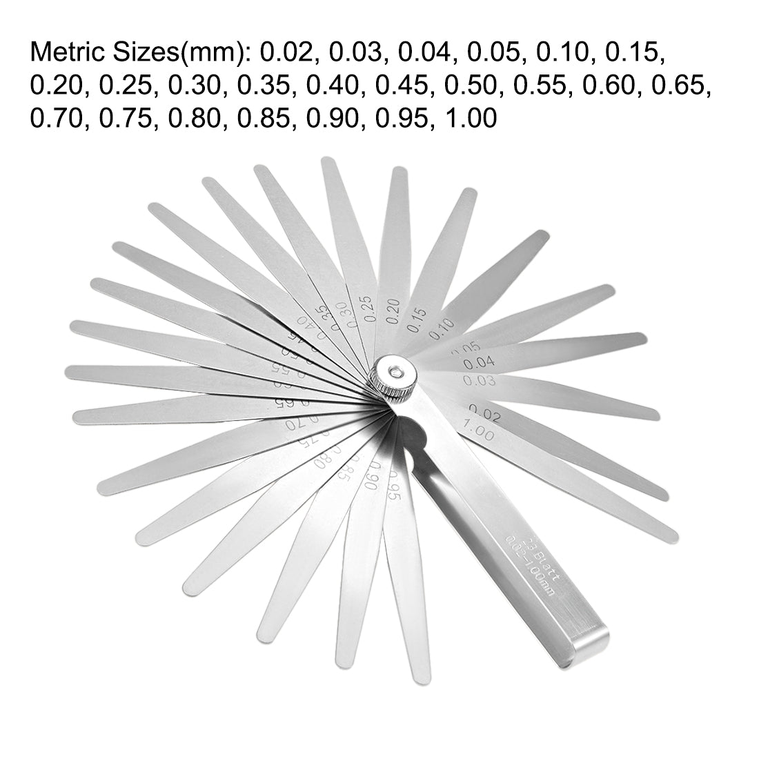 Suitable for designers, engineers, mechanics to measure the thickness of tappet clearances, spark plugs gaps, bearing clearances, piston ring gaps and other.