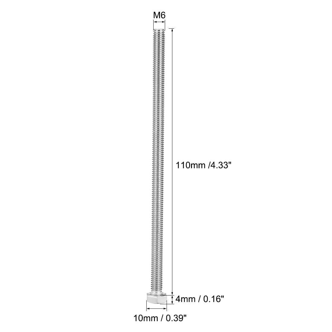 Specification: Product Name: Hex Bolts Material: 304 Stainless Steel Color: Silver Tone Dimension: M6 x 110mm Rod Length: 110mm / 4.33" Pitch: 1mm / 0.04" Hex Width: 10mm / 0.39" Hex Thickness: 4mm / 0.16" Tightening Torque: 9-12 · m Standard: ISO4017/DIN933 Package Content: 5 x Hex Bolts