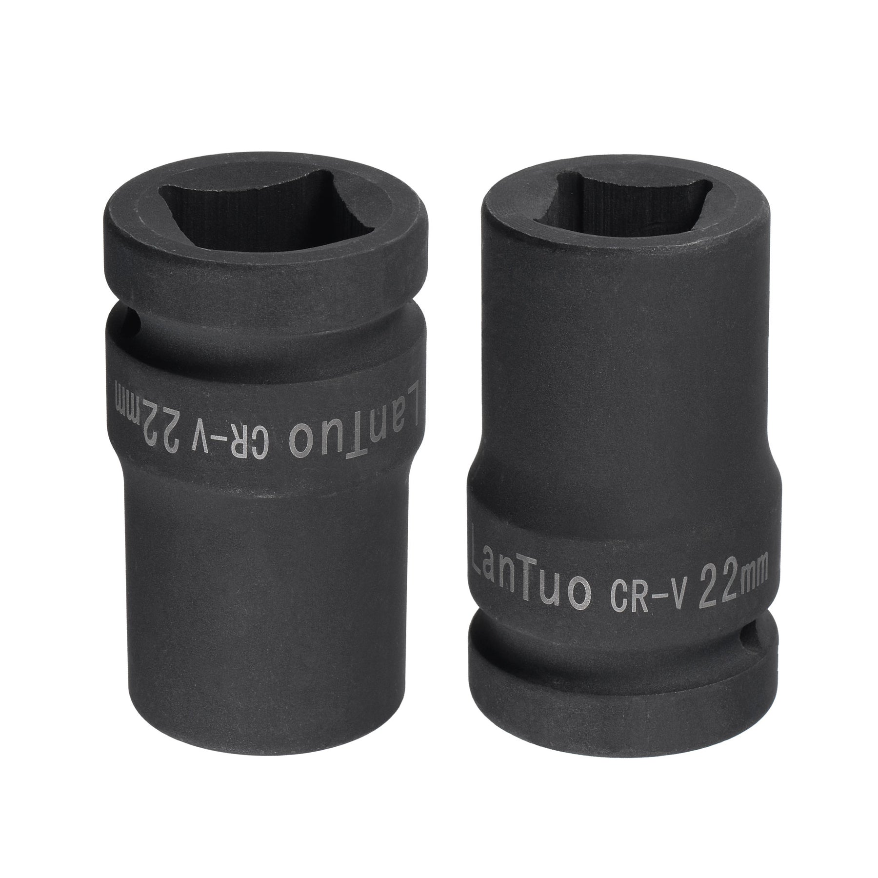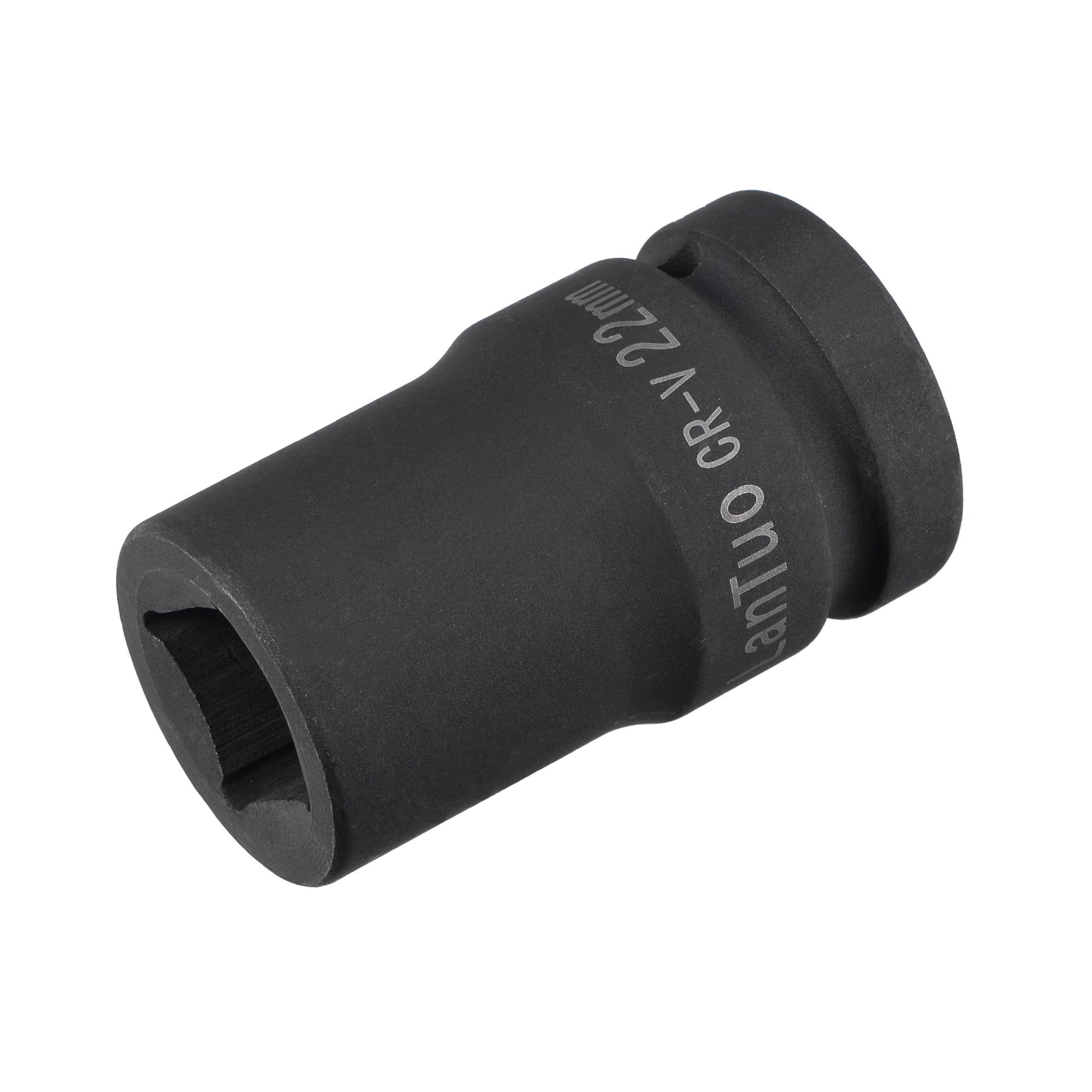 Specifications: * Socket Size: 22mm * Drive Size: 1-inch * Total Length: 80mm / 3.15-inch * Material: Chrome-Molybdenum Steel (CR-MO) * Finish: Black Phosphate * Color: Black
