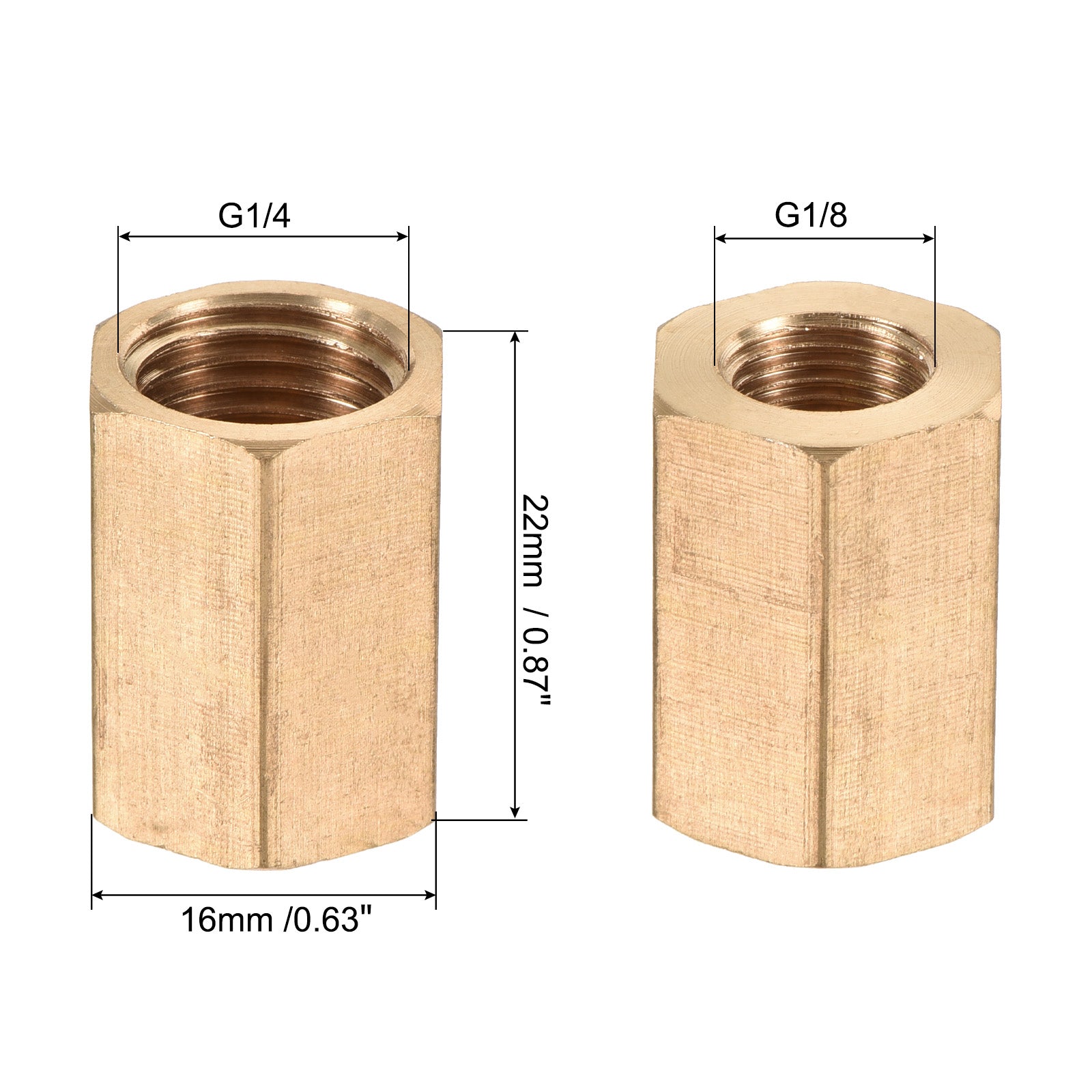 What will I get? Color: Gold Fitting Shape: Straight Material: Brass Thread Size: G1/4 to G1/8 Female Overall Size: 22mm x 16mm / 0.87x0.63 inch (L*Hex W) Package Content: 1 x Threaded Tube Coupling